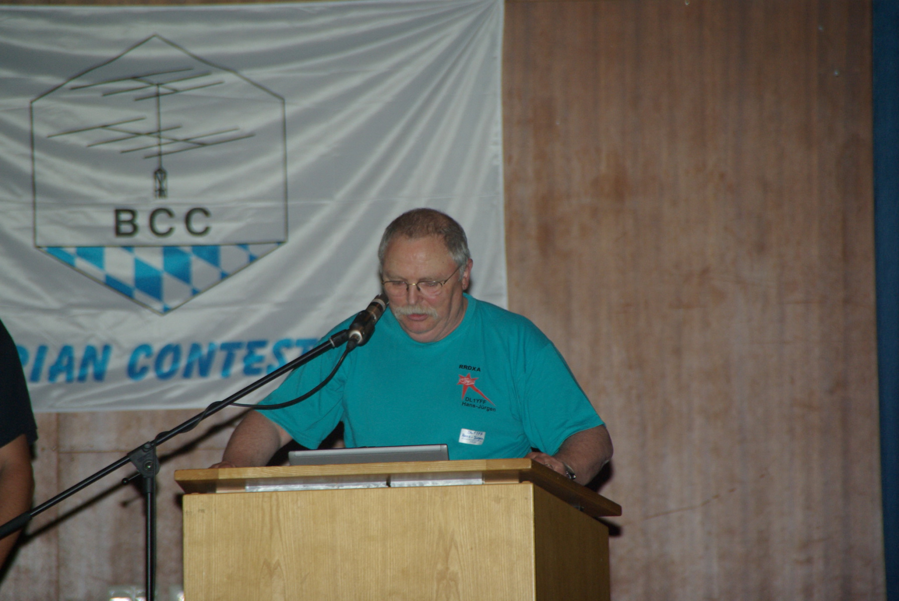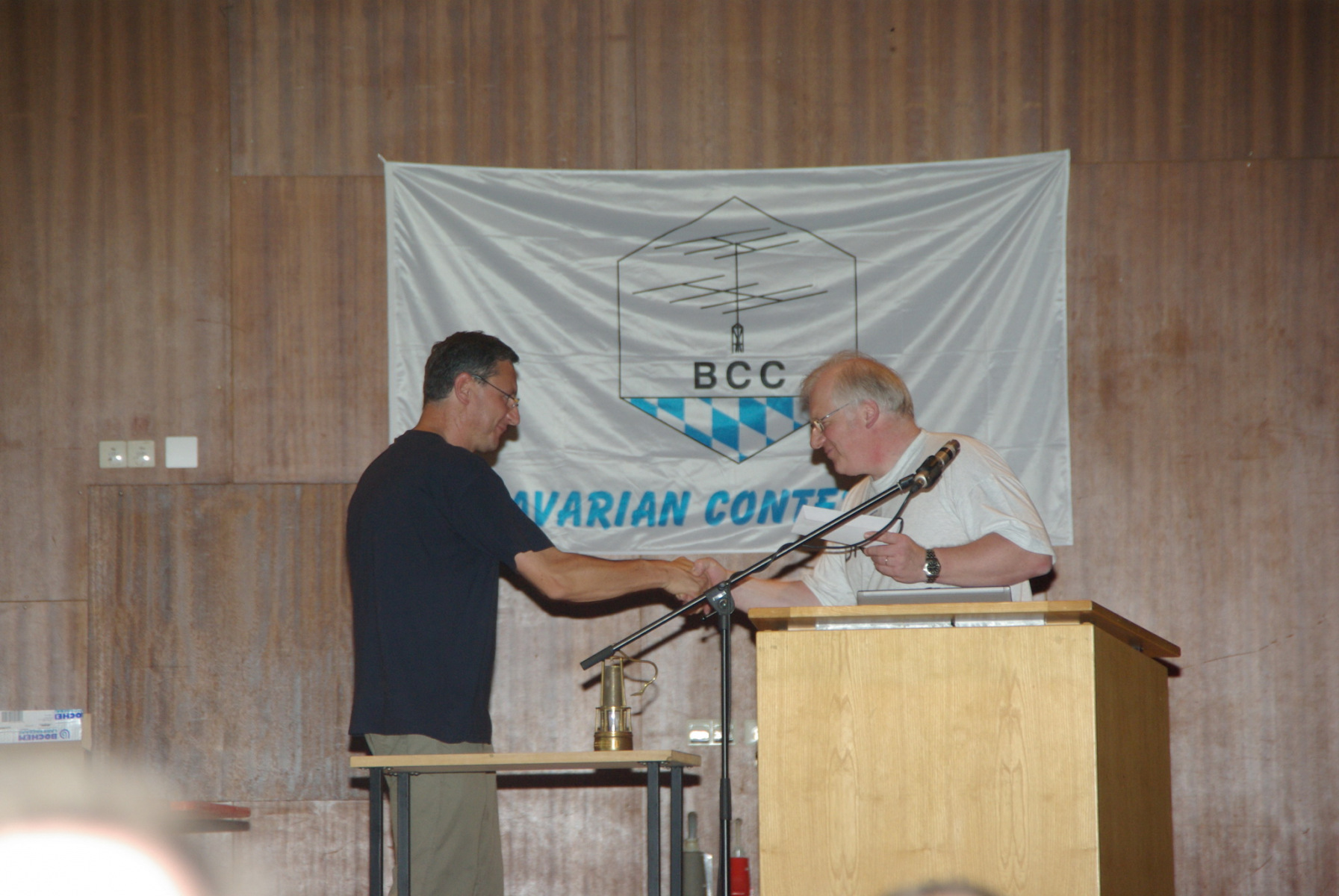 Absoluter Höhepunkt des Besuches der HAM RADIO war zweifelsohne das BCC-Buffet am Samstag Abend – in diesem Jahr ganz im Sinne unseres 25jährigen Jubiläums. Mit 296 Gästen haben wir jedenfalls nicht gerechnet gehabt und waren deshalb umso glücklicher, das am Ende alles in Oberteurigen gut geklappt hat. Die Plätze waren ausreichend, das Buffet lecker, die Stimmung prima, zumal jeder erst einmal ein Freigetränk auf unser Wohl trinken konnte. Ben, DL6RAI gab nach der Begrüßung eine kurze Einführung in die 25jährige Geschichte des Contestclubs. Der neue Sekretär der RRDXA Hans-Jürgen, DL1YFF, überbrachte die Grüße seines Contestclubs verbunden mit einer originalen Grubenlampe aus der Heimat der RRDXA als Geschenk. Dankeschön! Auch Hans, DK3YD überbrachte im Namen von C12 die besten Grüße und Glückwünsche.