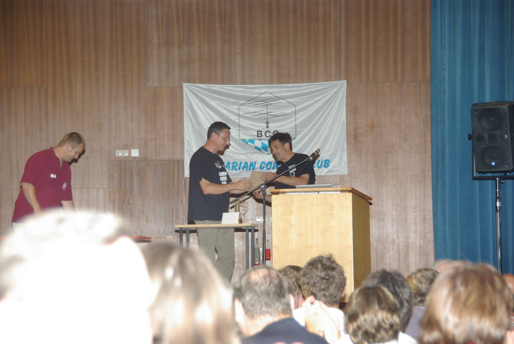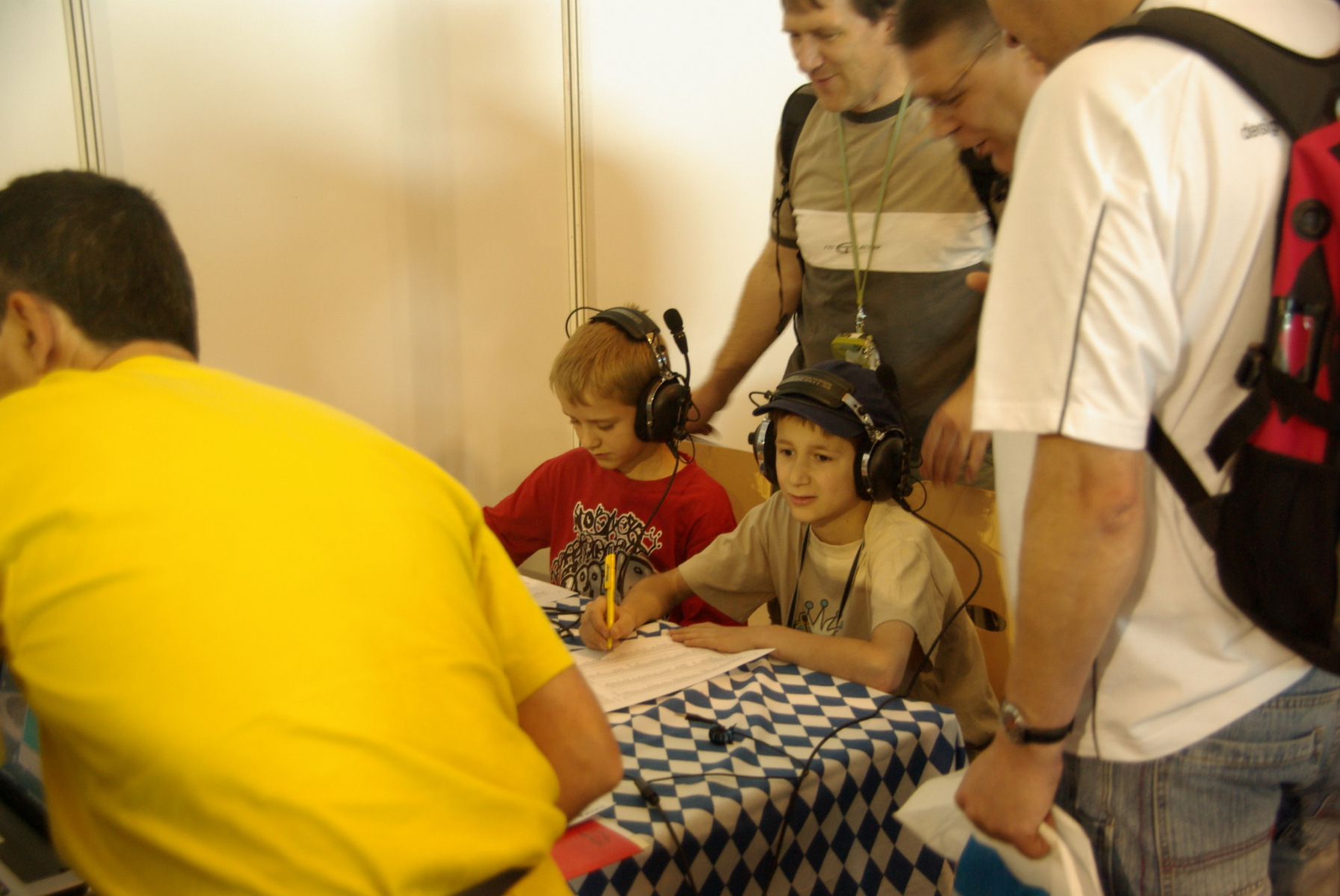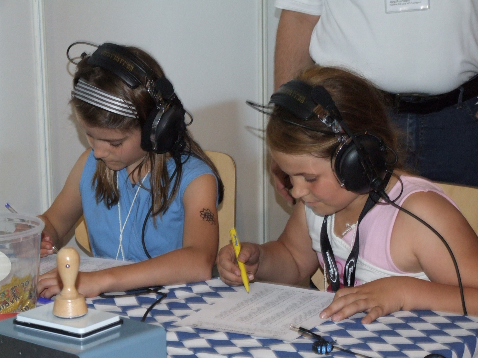 Aber auch unser Contester-Nachwuchs hatte wieder die Chance, bei uns an der Messe-Rallye teilzunehmen und sich im Vornamen-PileUp zu üben. Durch Veränderung der Bänder war es in diesem Jahr insofern einfacher, das vor allem die älteren Teilnehmer mehr Vornamen identifizieren konnten. Das hat den Kindern und Jugendlichen in Summe deutlich mehr Spaß gemacht, weil einfach das Erfolserlebnis größer war. Der beste Teilnehmer mit 51 richtigen Vornamen bekam von uns einen Einkaufsgutschein von Mediamarkt, außerdem zogen wir aus allen Teilnehmern jeden Tages (Freitag 24, Samstag 27) noch Gutscheingewinner. Die Übergabe fand während der Auswertung der Rallye auf der DARC-Bühne durch Ben, DL6RAI und Heijo, DJ1OJ statt.