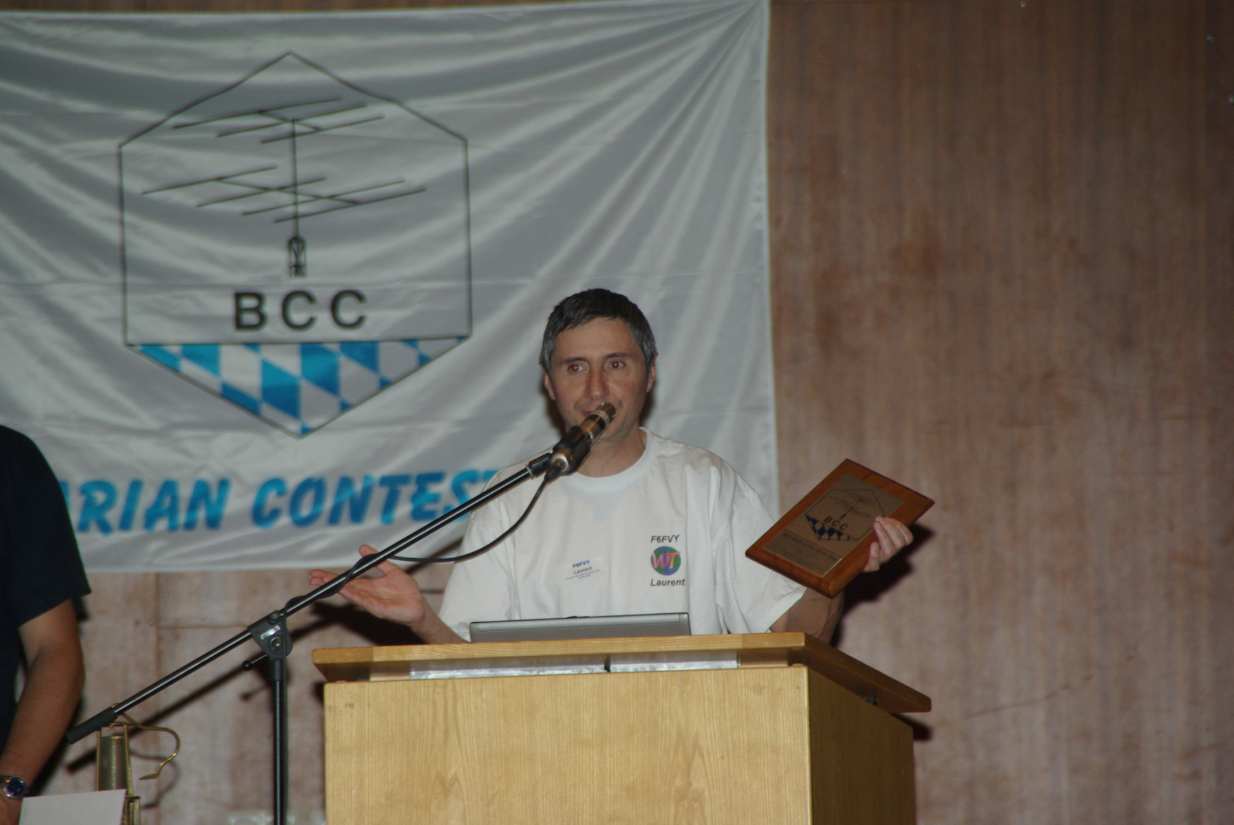 Traditionell wurde bei dieser Veranstaltung auch der BCC-Man of the Year geehrt. In diesem Jahr ging die Auszeichnung an Olivier, F5MZN für die Entwicklung von Wintest zusammen mit seinem Team. Herzlichen Glückwunsch.