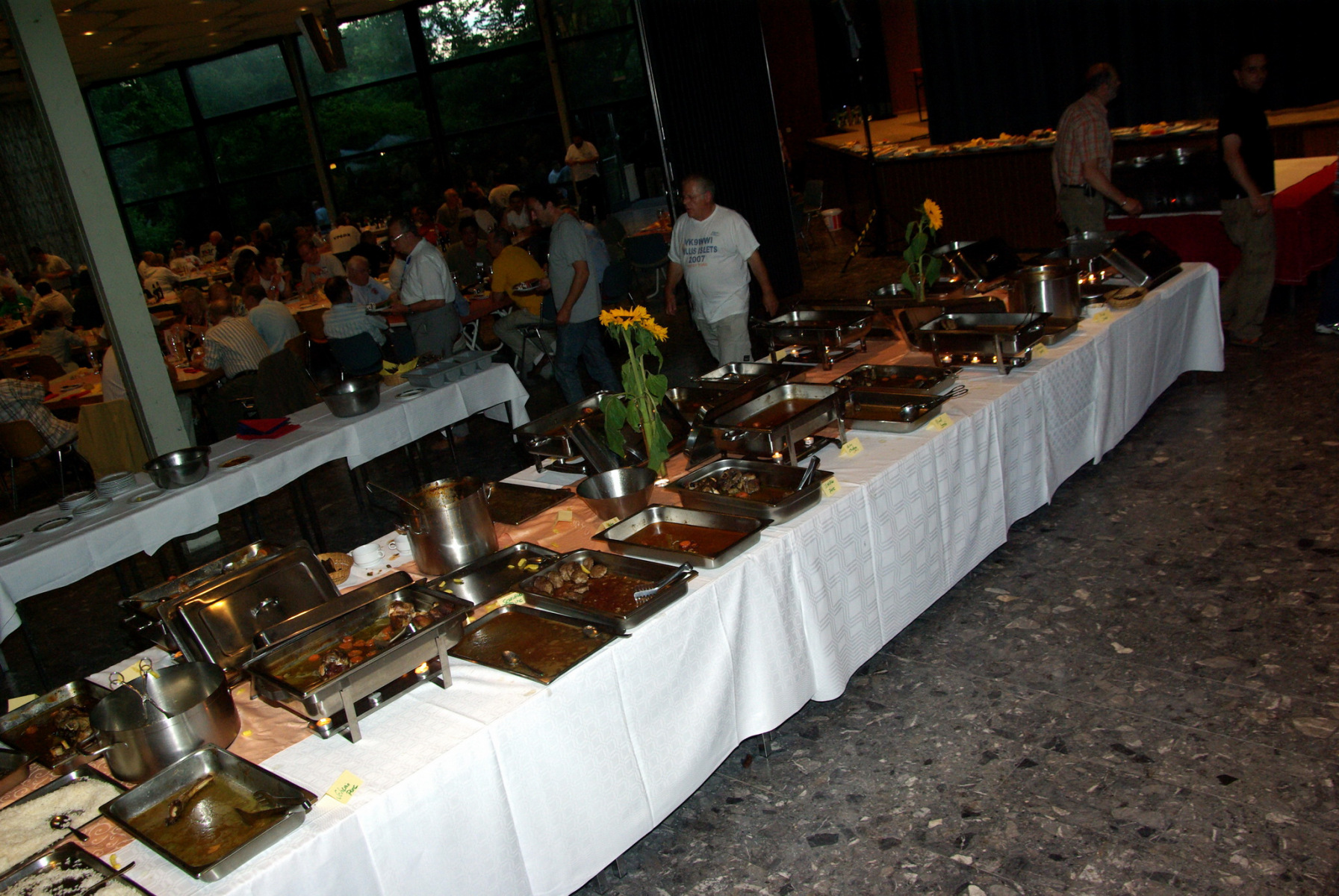 Gegen 20:30 Uhr wurde endlich das Buffet eröffnet. Das nun folgende Pile Up hätte jedem CQWW alle Ehre gemacht. Zum Glück war alles reichlich vorhanden, der Nachtisch sorgte zu einem späteren Zeitpunkt für ein weiteres kleiners Pile Up – sehr lecker!