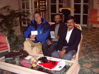 Im Rahmen einer Geschäftsreise durch Europa konnte am vergangenen Donnerstag, den 13. November 2008 ein spontanes Treffen mit Kumar, VU2BGS, in Aschheim bei München arrangiert werden. Mit dabei war Luise, DL2MLU, und Kumars Kollege Krishna (kein Funkamateur). Die beiden kommen aus Bangalore in Südindien und waren seit einigen Tagen unterwegs in Europa, um Geschäftskontakte zu knüpfen, u.a. auch bei Airbus in Toulouse und EADS in Ulm.