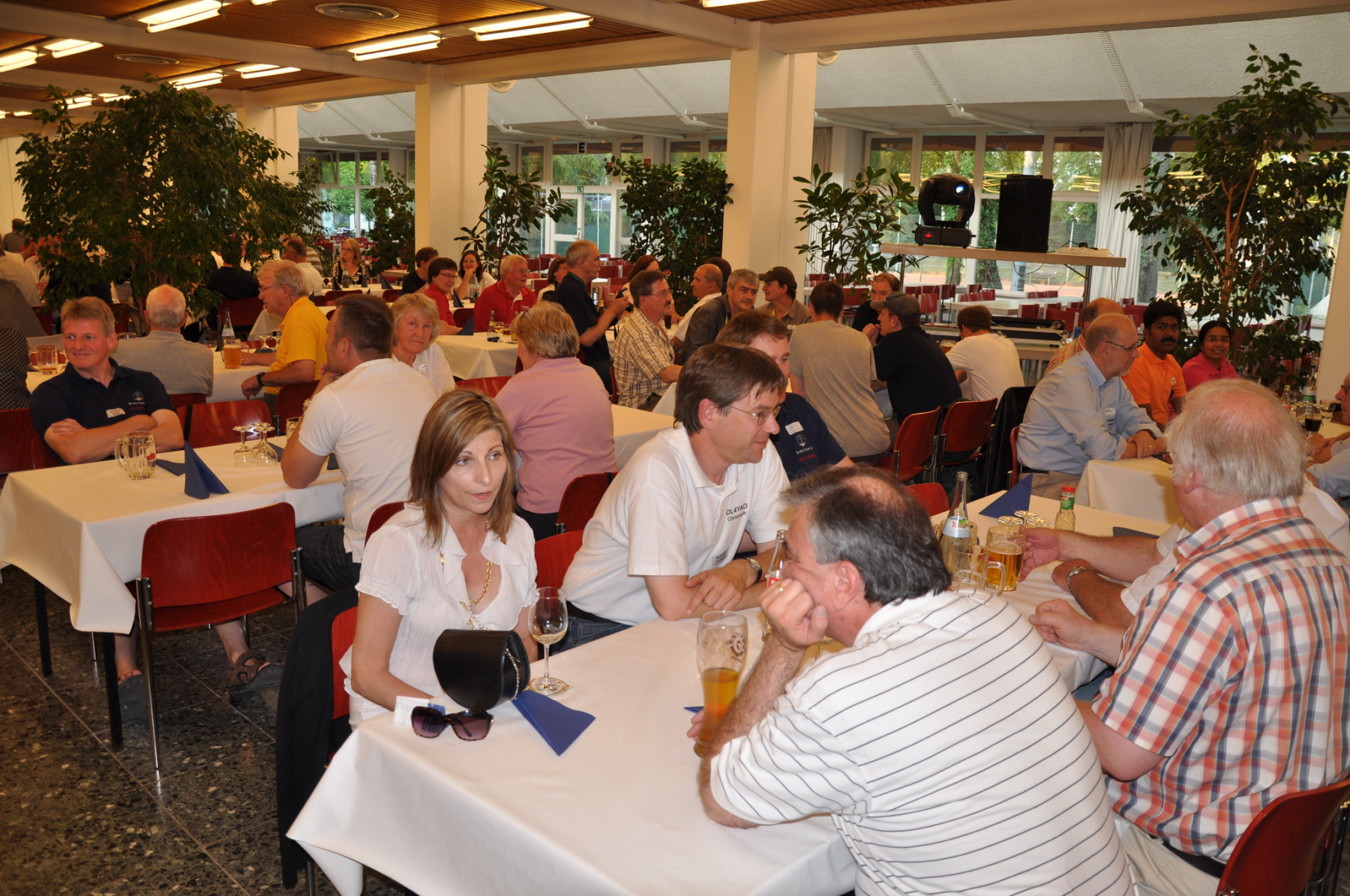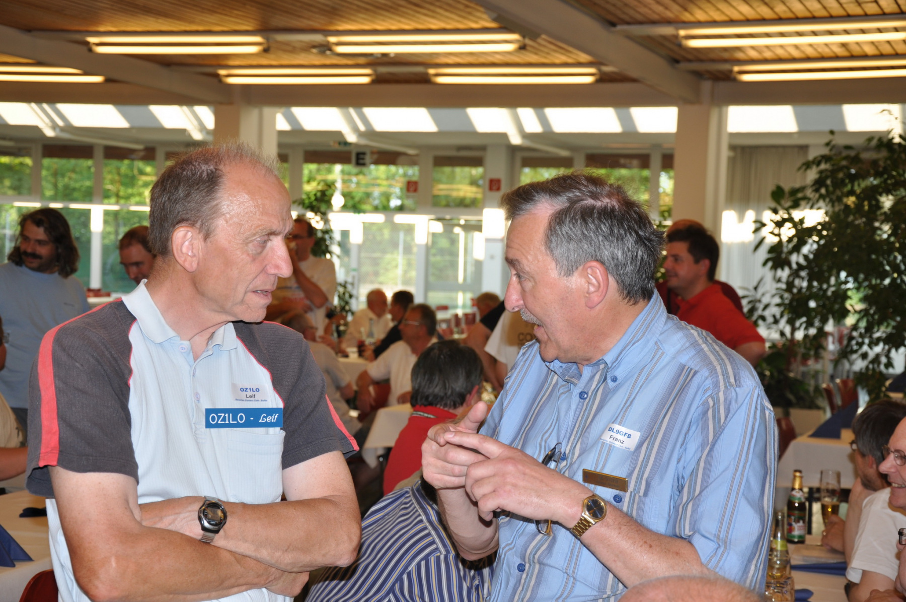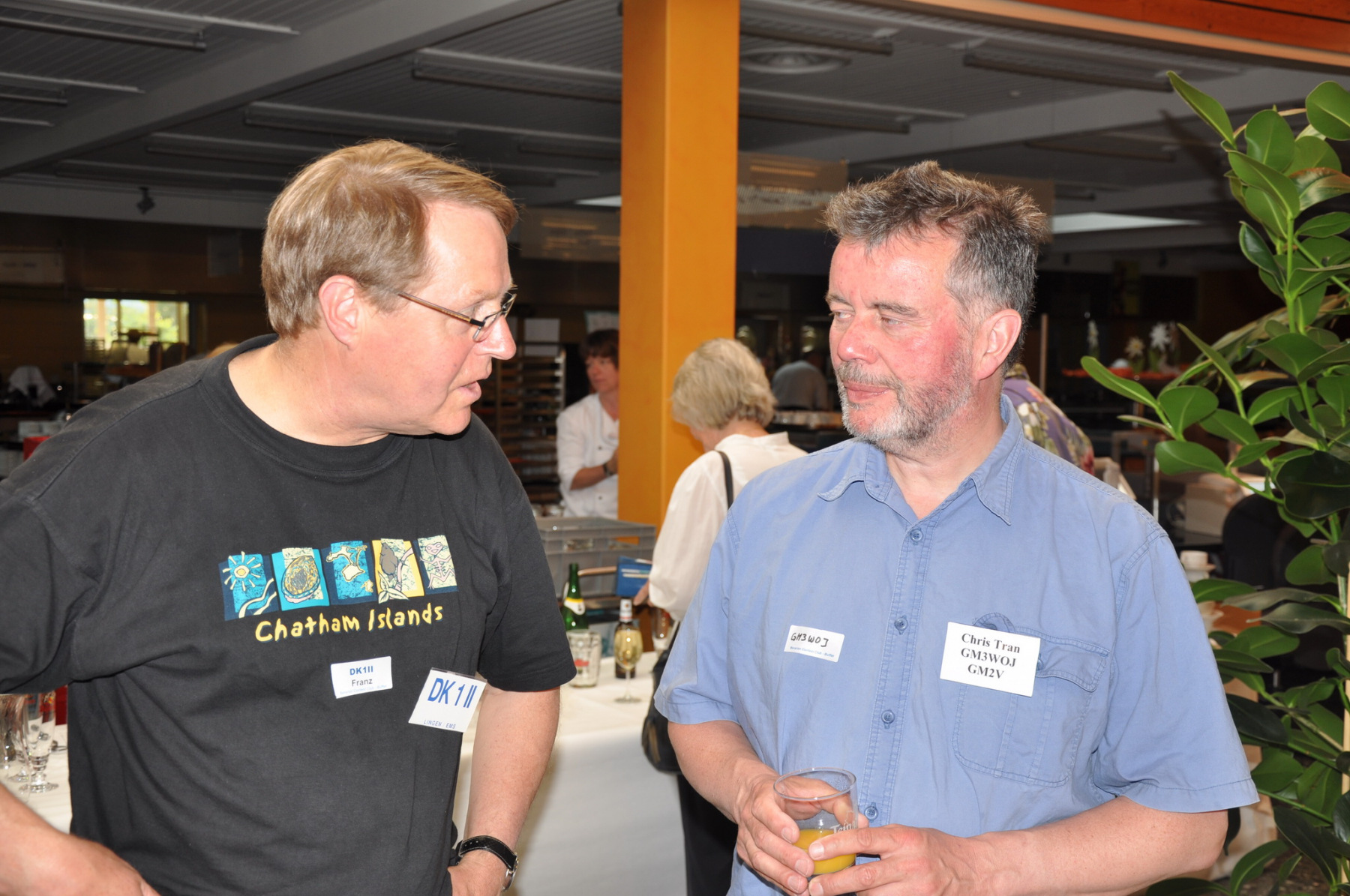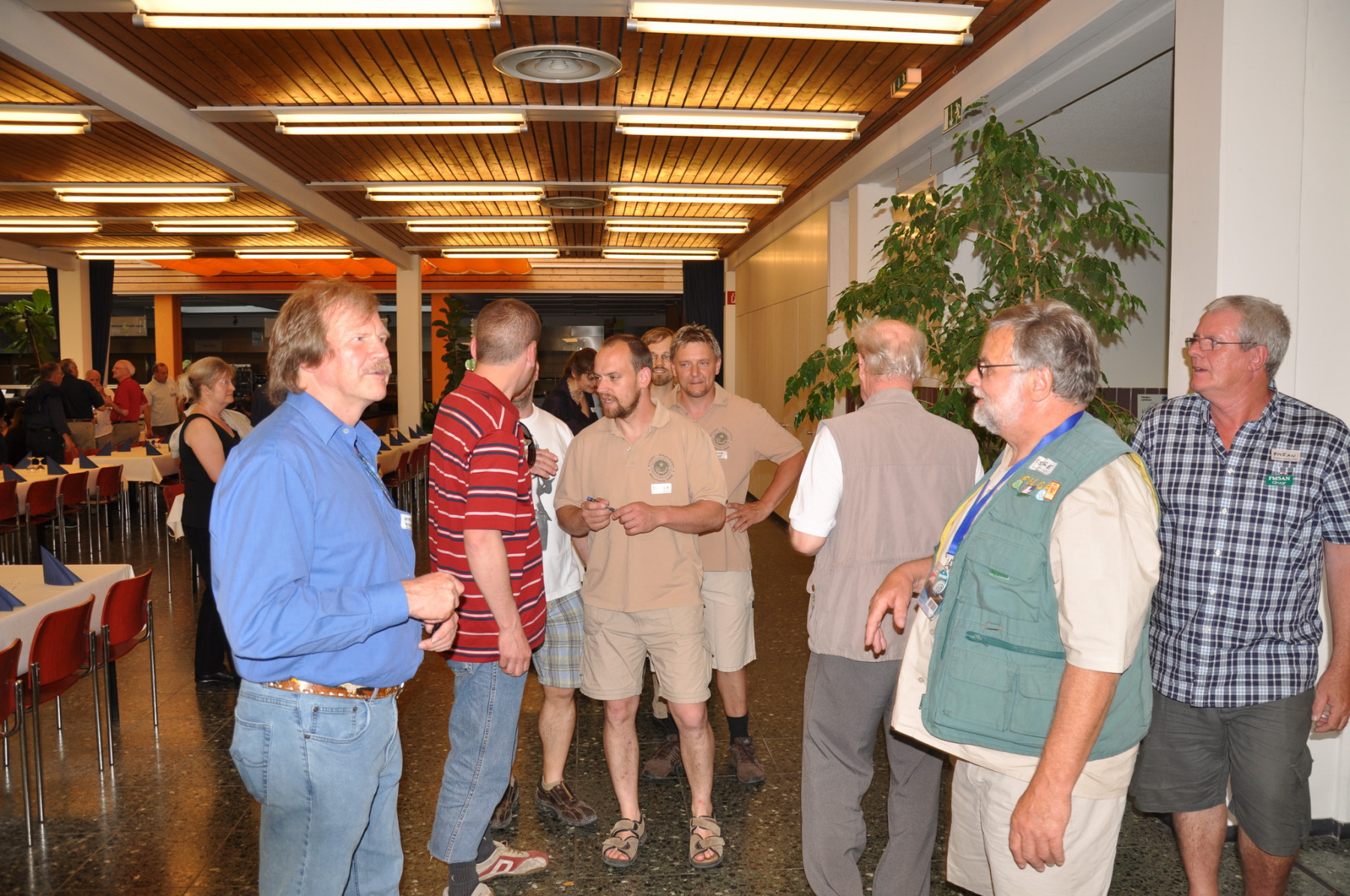 Während am Freitag Abend die BCCler auf vielen verschiedenen Veranstaltungen zu finden waren – vom Grillen auf dem Zeltplatz über das Treffen der DRCG bis hin zum RRDXA-Abend im Adler – traf man sich am Samstag traditionell zum BCC-Buffet. Wir hatten zum zweiten Mal in die Kantine der EADS in Immenstaad eingeladen. Die rund 330 Gästen in diesem Jahr kamen aus allen Kontinenten. Traditionell verewigten sich alle auf unserer Unterschriftenwand, bevor sie im wieder schön eingerichteten Raum ihren Platz suchen. DF2CK, DK7MCX, DK3GI sowie DL2NCY und DL8DYL bildeten das Empfangskommitee und standen den Gästen auch für Fragen zur Verfügung.