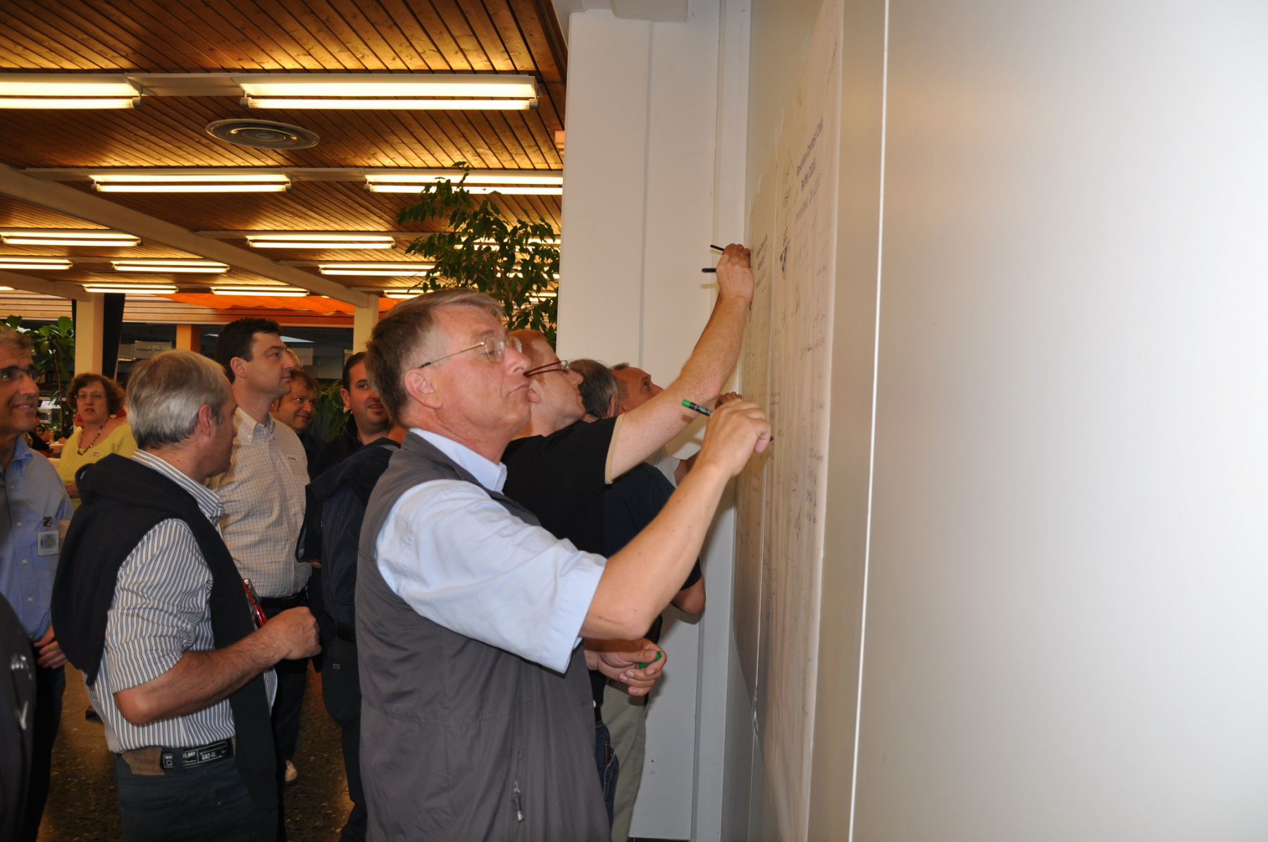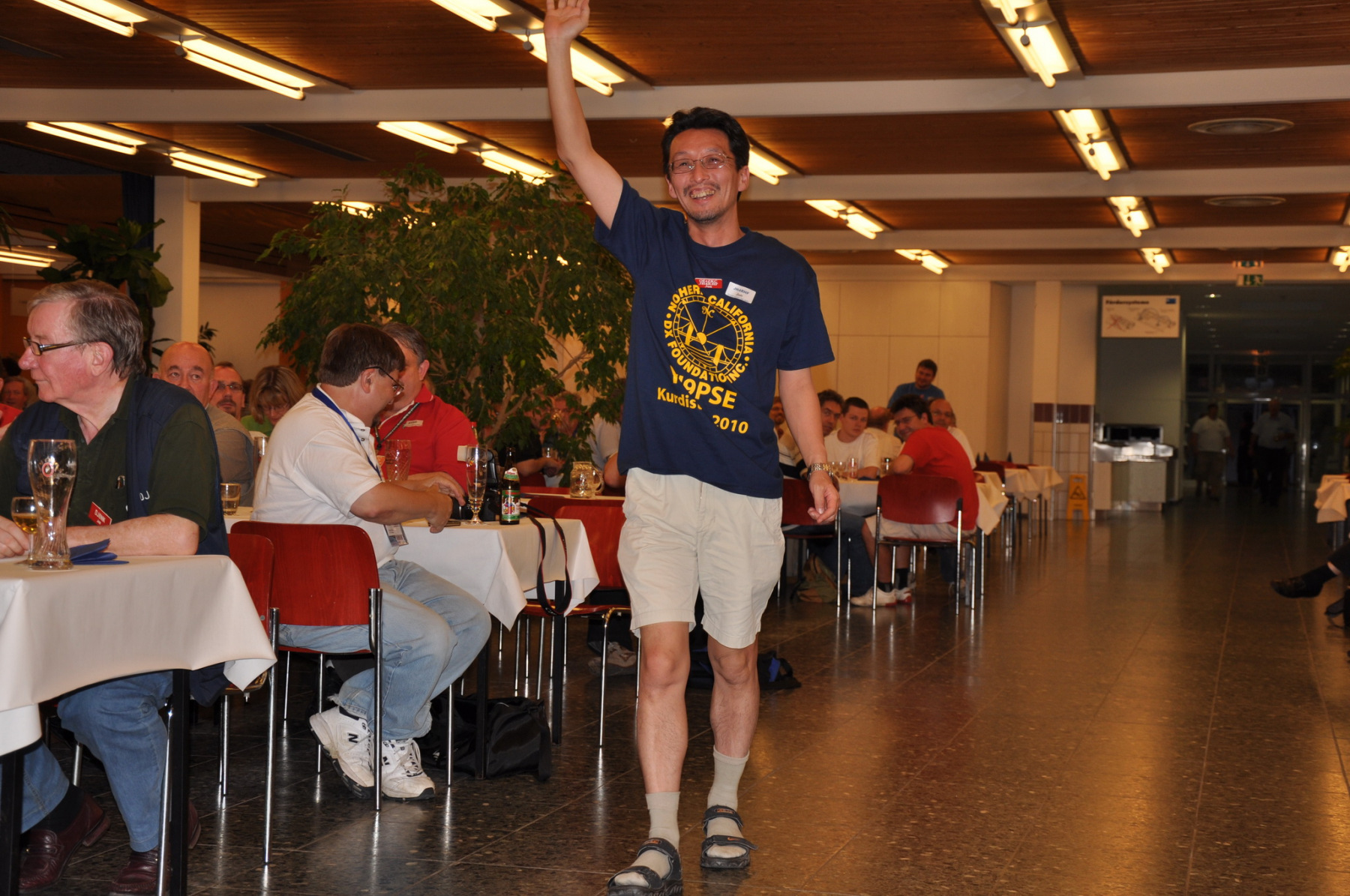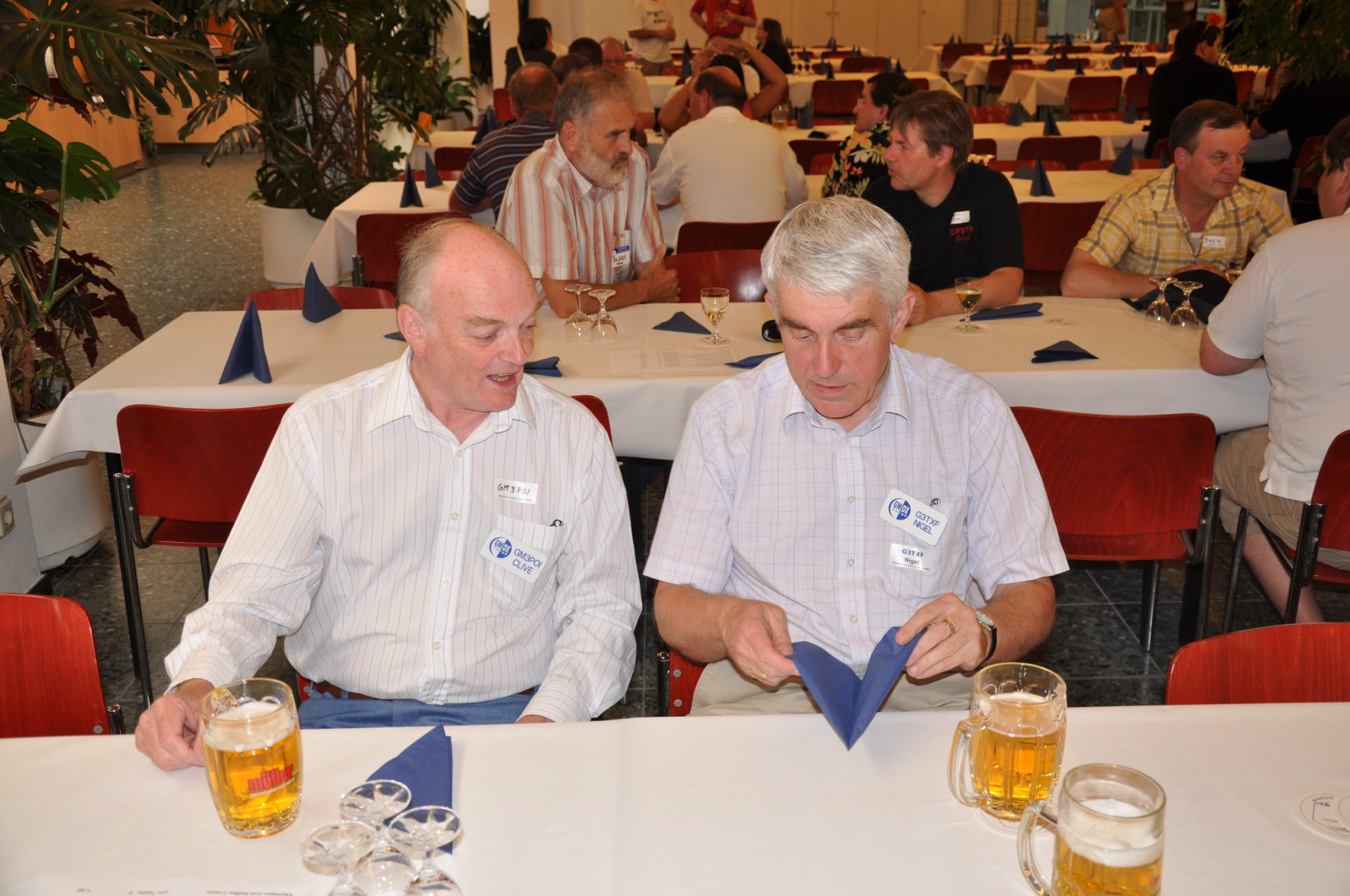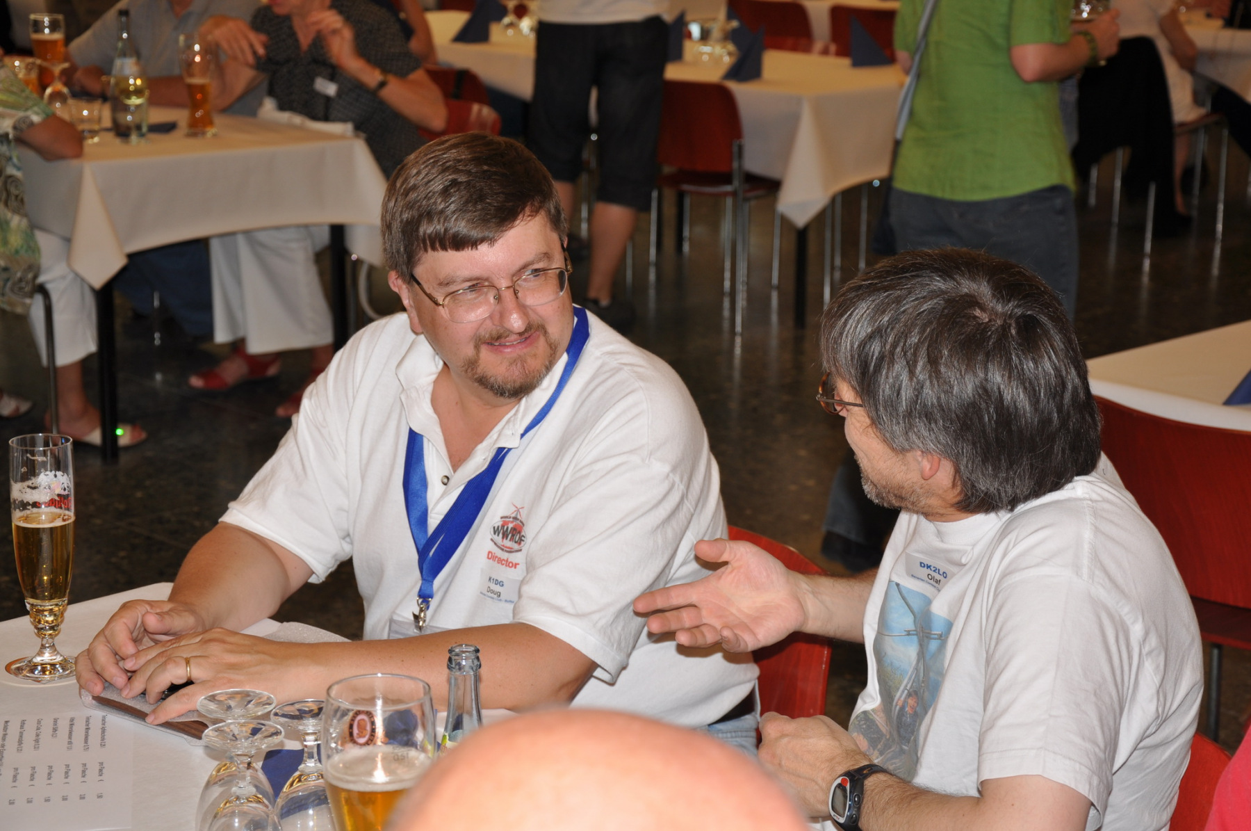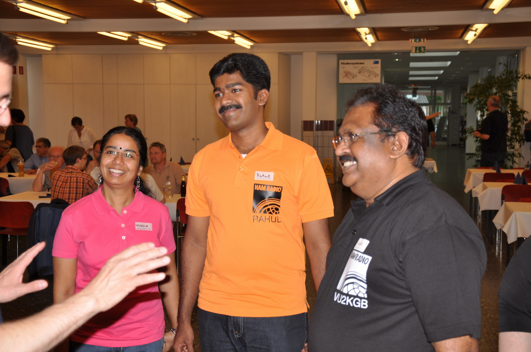 Während am Freitag Abend die BCCler auf vielen verschiedenen Veranstaltungen zu finden waren – vom Grillen auf dem Zeltplatz über das Treffen der DRCG bis hin zum RRDXA-Abend im Adler – traf man sich am Samstag traditionell zum BCC-Buffet. Wir hatten zum zweiten Mal in die Kantine der EADS in Immenstaad eingeladen. Die rund 330 Gästen in diesem Jahr kamen aus allen Kontinenten. Traditionell verewigten sich alle auf unserer Unterschriftenwand, bevor sie im wieder schön eingerichteten Raum ihren Platz suchen. DF2CK, DK7MCX, DK3GI sowie DL2NCY und DL8DYL bildeten das Empfangskommitee und standen den Gästen auch für Fragen zur Verfügung.