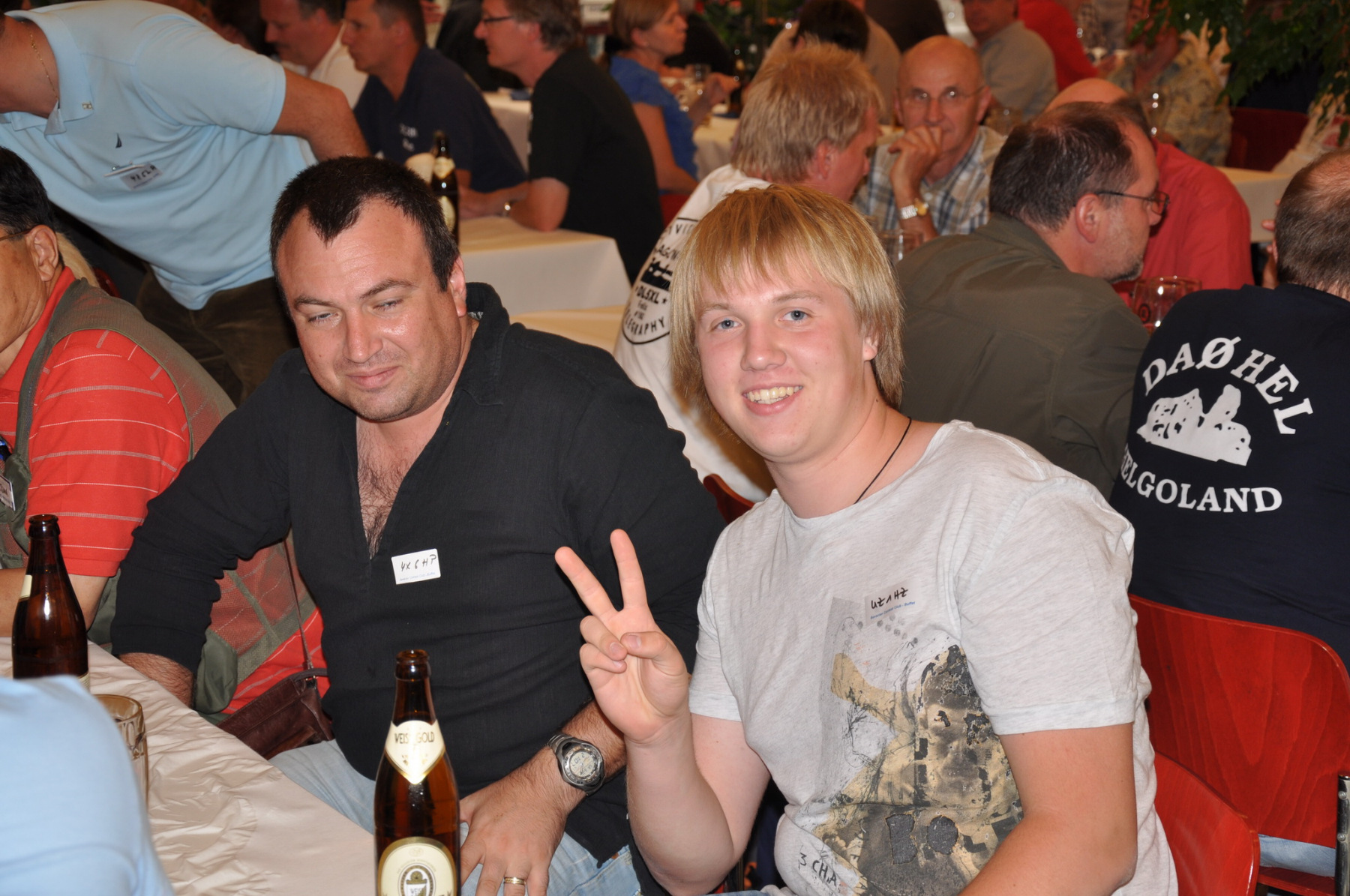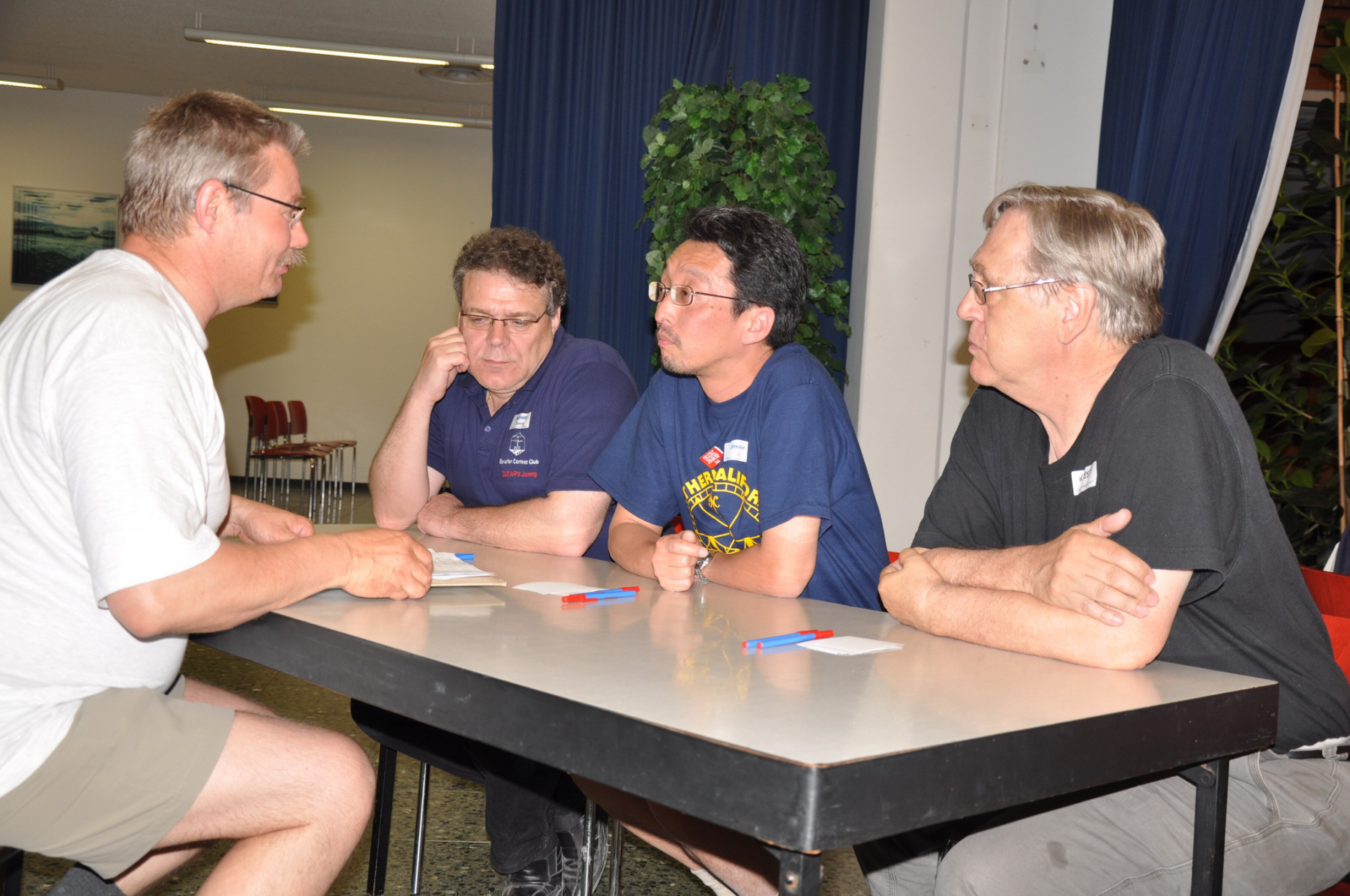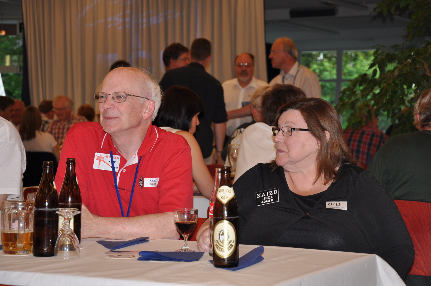 Später am Abend fand unter Leitung von PA1TT ein Team-Wettstreit statt. Die Teams wurden aus je einem OM und einer (X)YL gebildet. Unter dem wachsamen Auge des Contestkommittes, bestehend aus DL8WPX, K3EST und JH4RHF, mussten die Teams Fragen aus dem Funker- wie auch dem reellen Leben beantworten. Die Siegerteams konnten sich über eine Flasche Wein freuen, Spaß hatten alle.