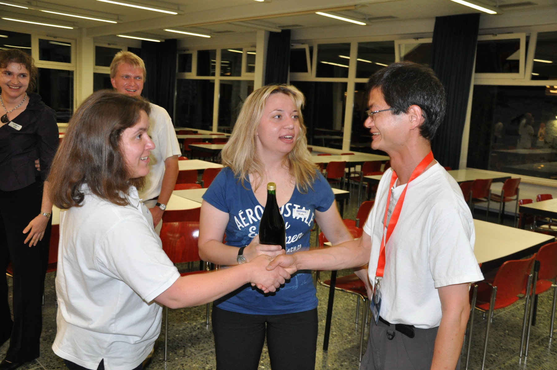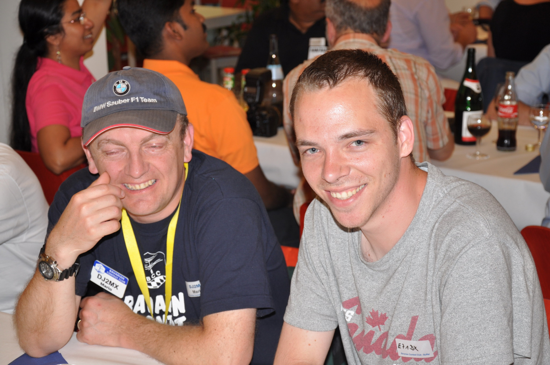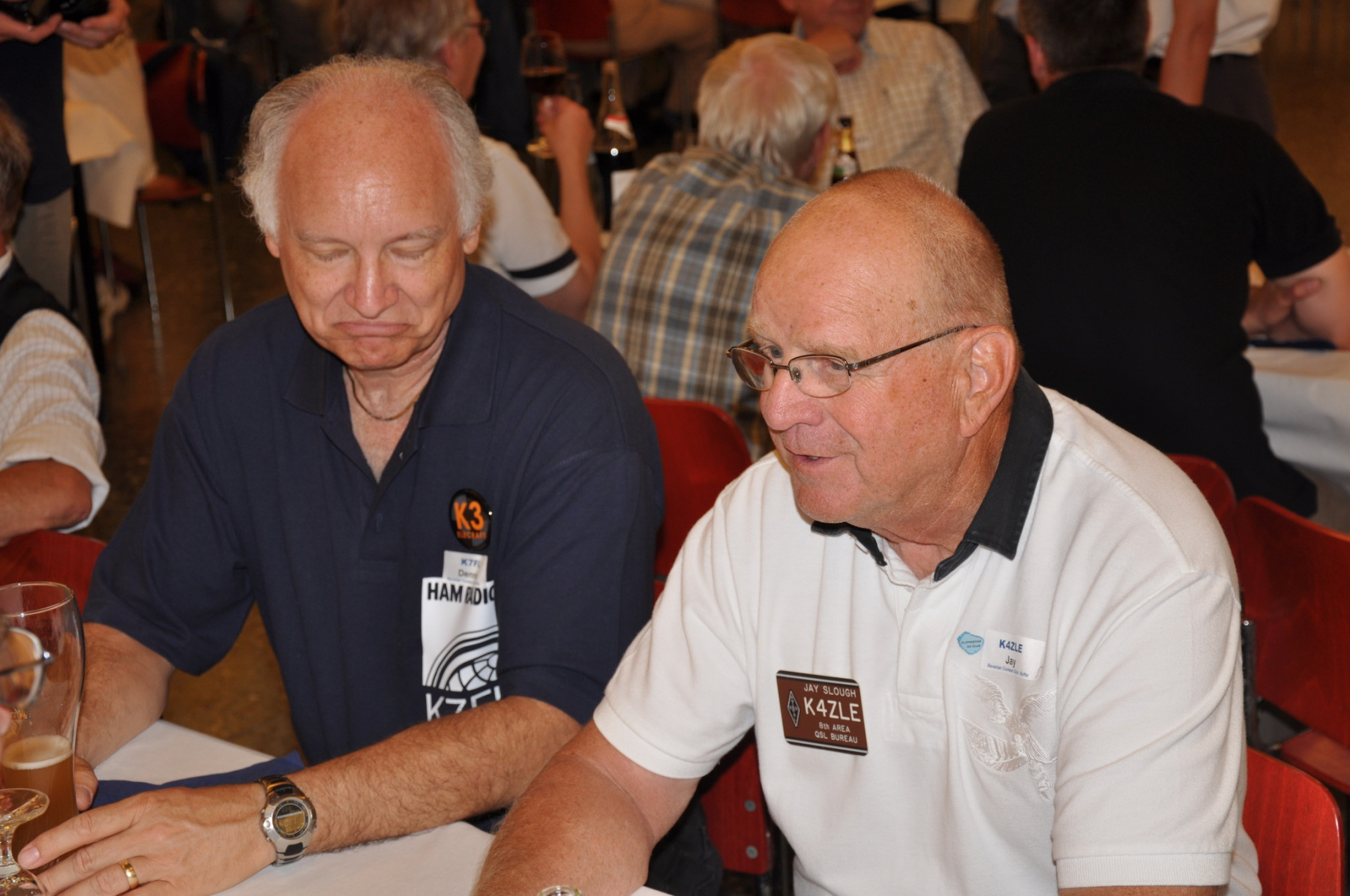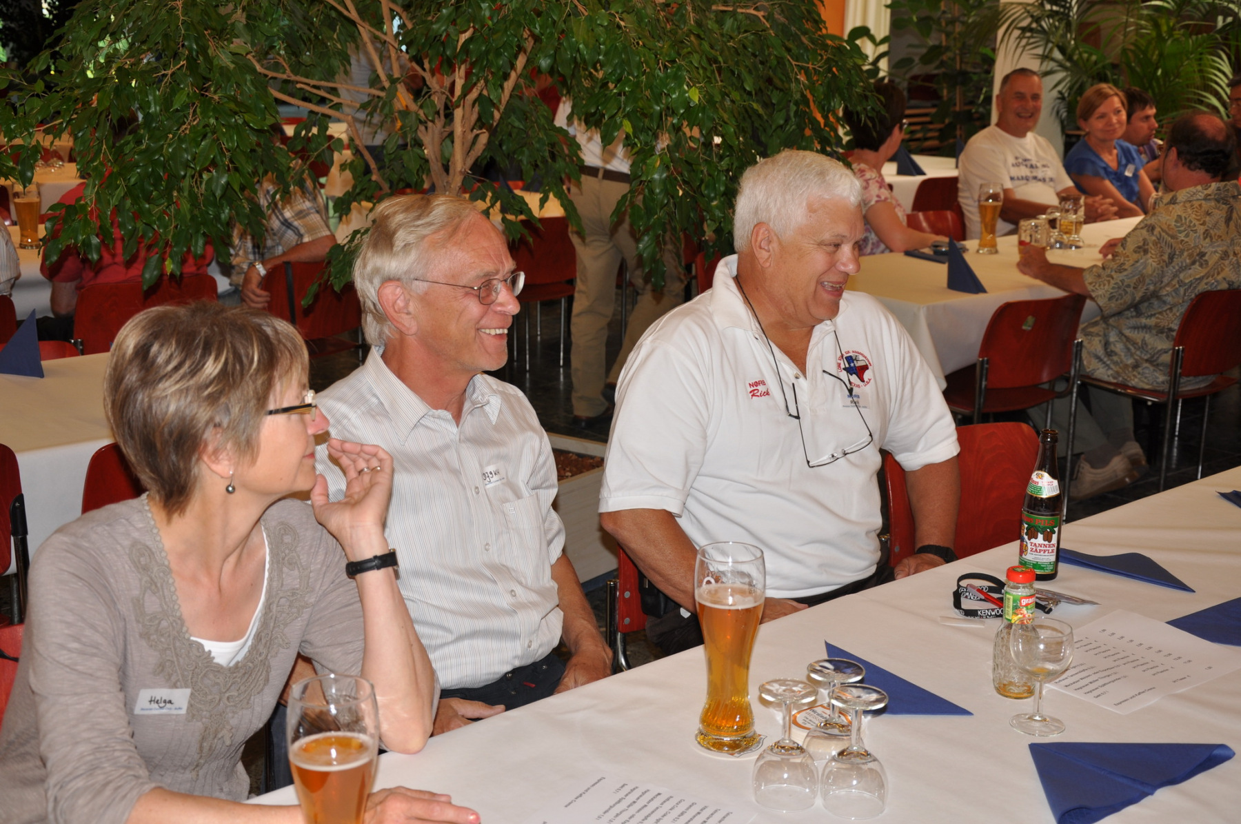 Später am Abend fand unter Leitung von PA1TT ein Team-Wettstreit statt. Die Teams wurden aus je einem OM und einer (X)YL gebildet. Unter dem wachsamen Auge des Contestkommittes, bestehend aus DL8WPX, K3EST und JH4RHF, mussten die Teams Fragen aus dem Funker- wie auch dem reellen Leben beantworten. Die Siegerteams konnten sich über eine Flasche Wein freuen, Spaß hatten alle.
