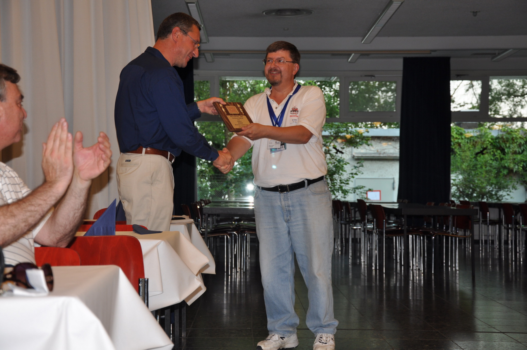 K1DG kam nun nach vorn und überreichte DL6RAI die Plakette für den Sieg des BCC in der Clubwertung des CQ WPX 2009. Danke an alle, dass wir erneut diese Auszeichnung erringen konnten!