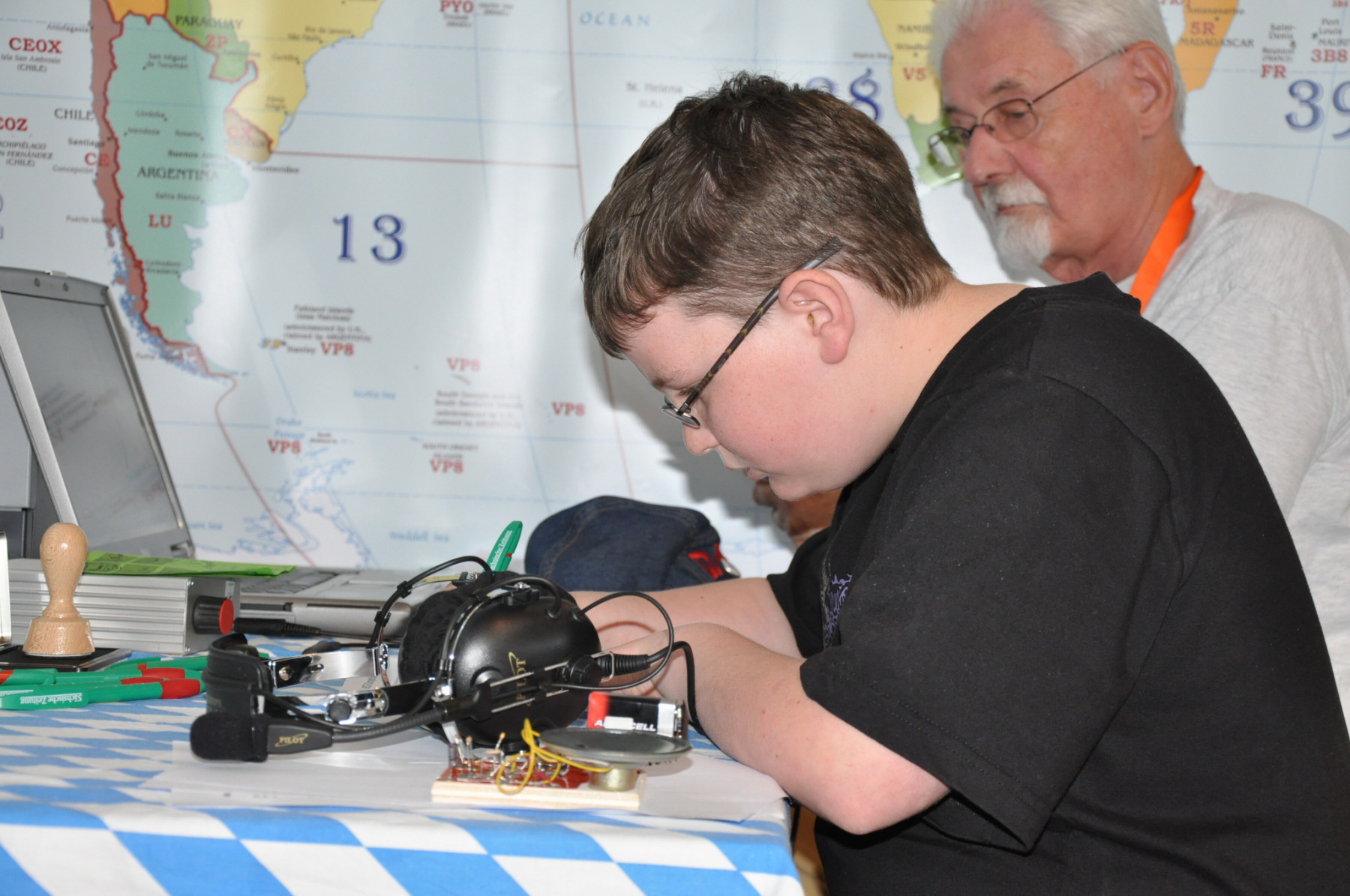 Während die „Großen“ in der BCC-Challenge kämpften, wollte der Nachwuchs im Rahmen der HAM Rallye bei uns das Vornamen-Pile-Up knacken. Es galt wieder, so viele Vornamen wie möglich zu erkennen und auf dem Teilnehmerzettel anzukreuzen. Als Ziel winkte der Gewinn eines 25 €-Einkaufsgutscheins, den der BCC unter den Teilnehmern pro Tag verloste sowie an den besten Newcomer vergab. Natürlich stiegen mit einem Stempel von uns auf der Teilnehmerkarte auch die Chancen auf einen Preis der DARC-Verlosung. Aus den 32 Teilnehmern am Freitag wurde Sebastian Golly, DE6BAS gezogen. Am Samstag war Bettina Müller die glückliche Gewinnern, die aus 76 Teilnehmern gezogen wurde. Ein Teilnehmer war uns schon aus dem Vorjahr bekannt: Daniel Gröger, OE7DDI war 2009 bester Teilnehmer. In diesem Jahr steigerte er sich noch und hörte 92 von 100 Vornamen. Damit konnte er erneut unseren Einkaufsgutschein mit nach Hause nehmen. Herzlichen Glückwunsch an alle Sieger und hoffentlich auch bald mal ein Wiederhören des ein oder anderen der Jugendlichen im Contest. Dazu ein großes Dankeschön an DJ1OJ, DL1MGB und DL8DYL für die Betreuung der Kinder.