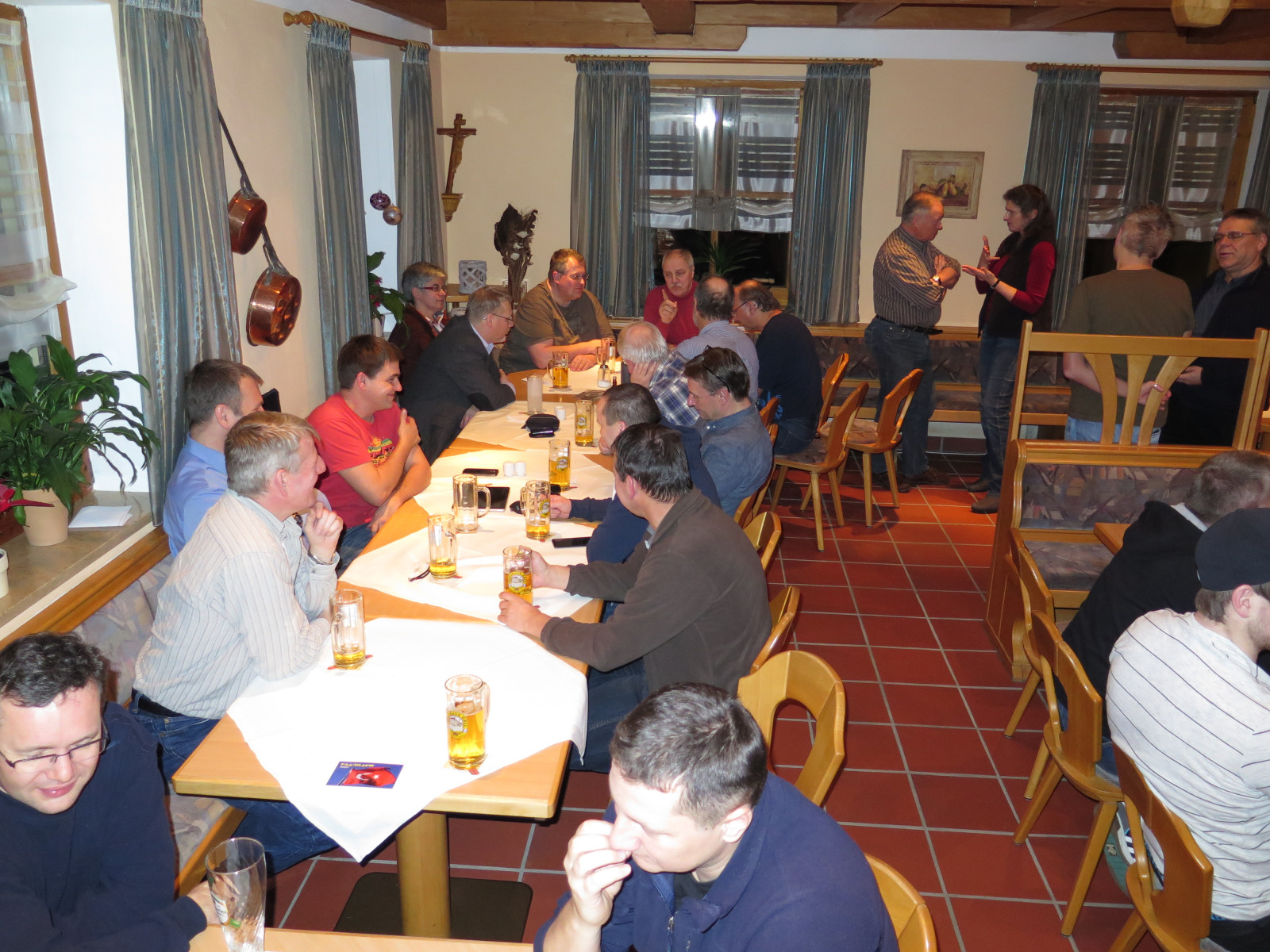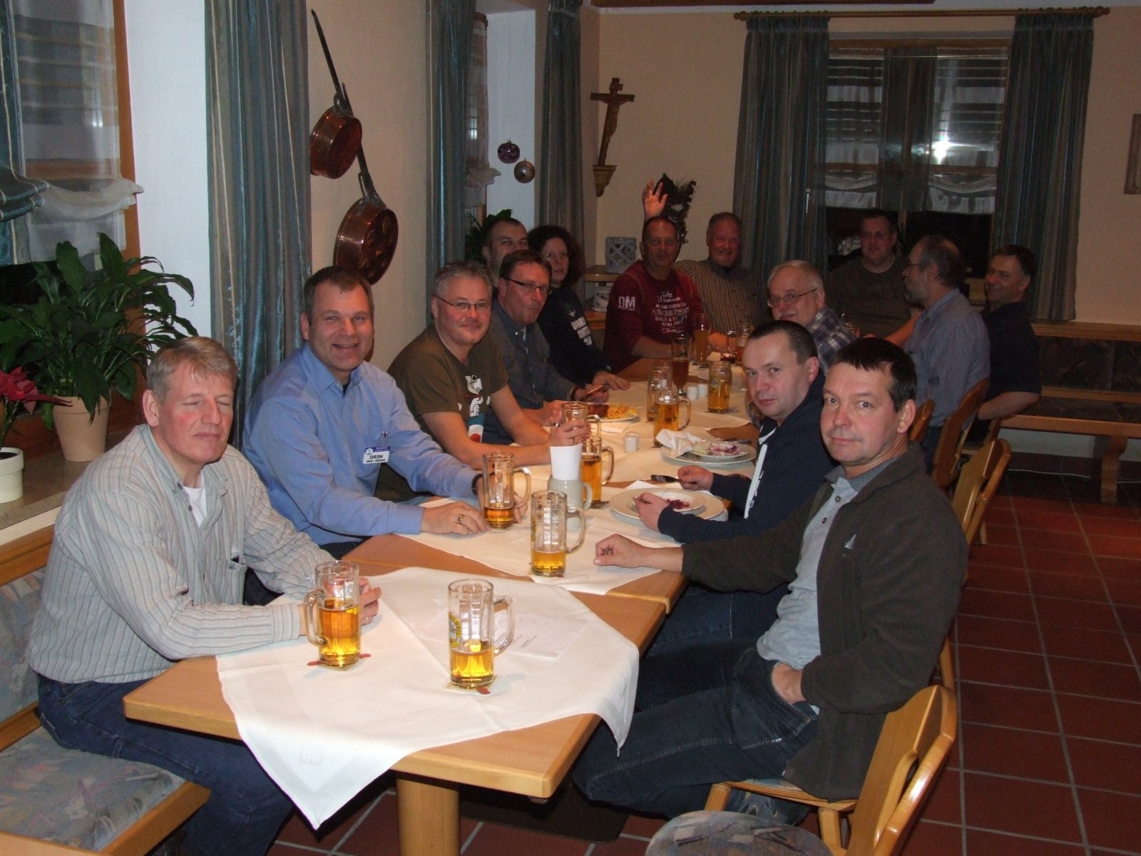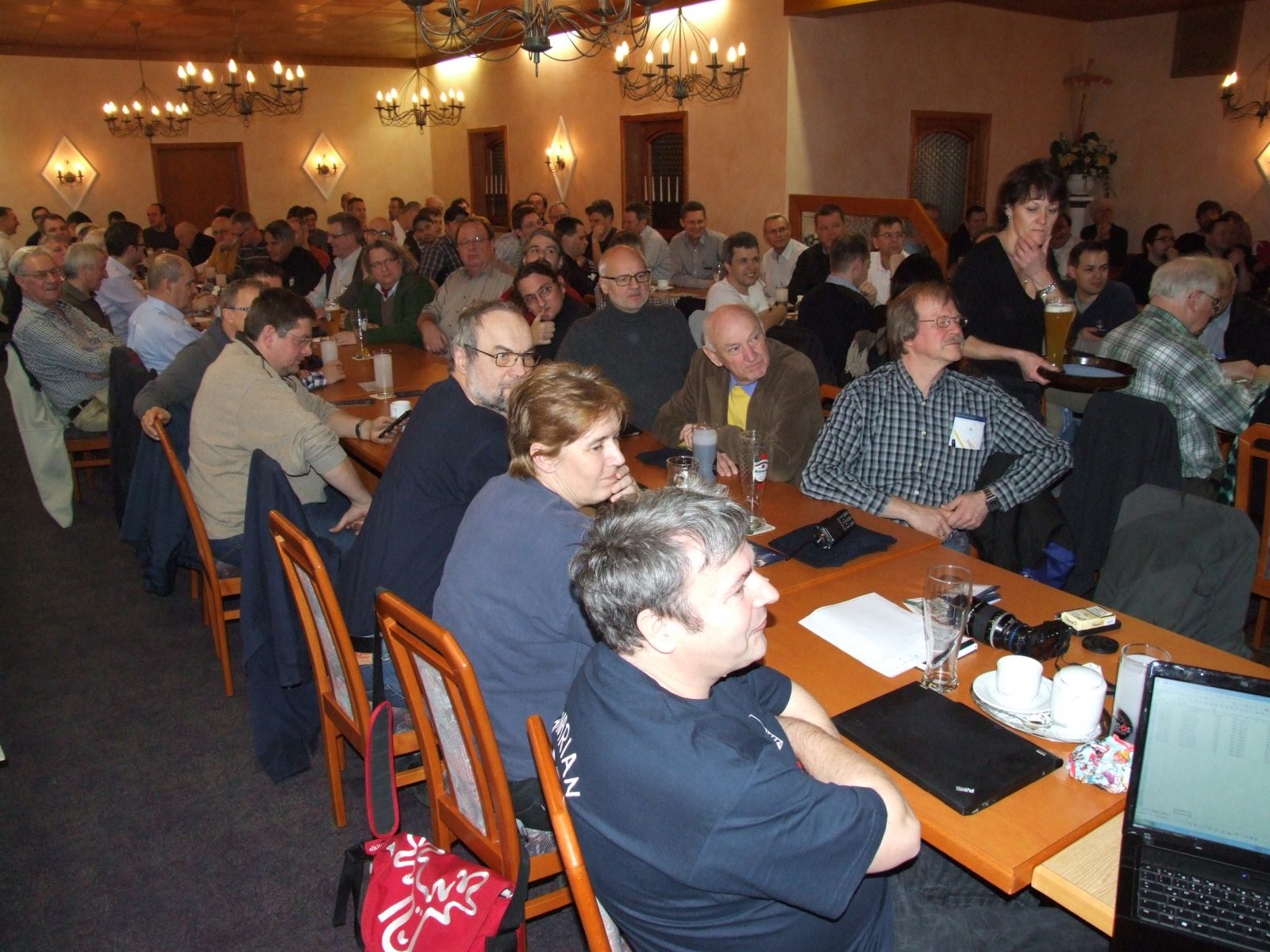 Dementsprechend füllte sich am Samstag der Frühstücksraum nur langsam, wurde aber schnell durch weitere neue Gäste mit Leben erfüllt. Der Vorstand zog sich gegen 10 Uhr zu seiner (übrigens öffentlichen!) Sitzung zurück. Das vergangene Jahr wurde ausgewertet, Anfragen und Wünsche der Mitglieder besprochen und Ideen für das neue Jahr diskutiert. Inzwischen tobte das Leben im Gasthaus – es wimmelte nur so von Menschen!
