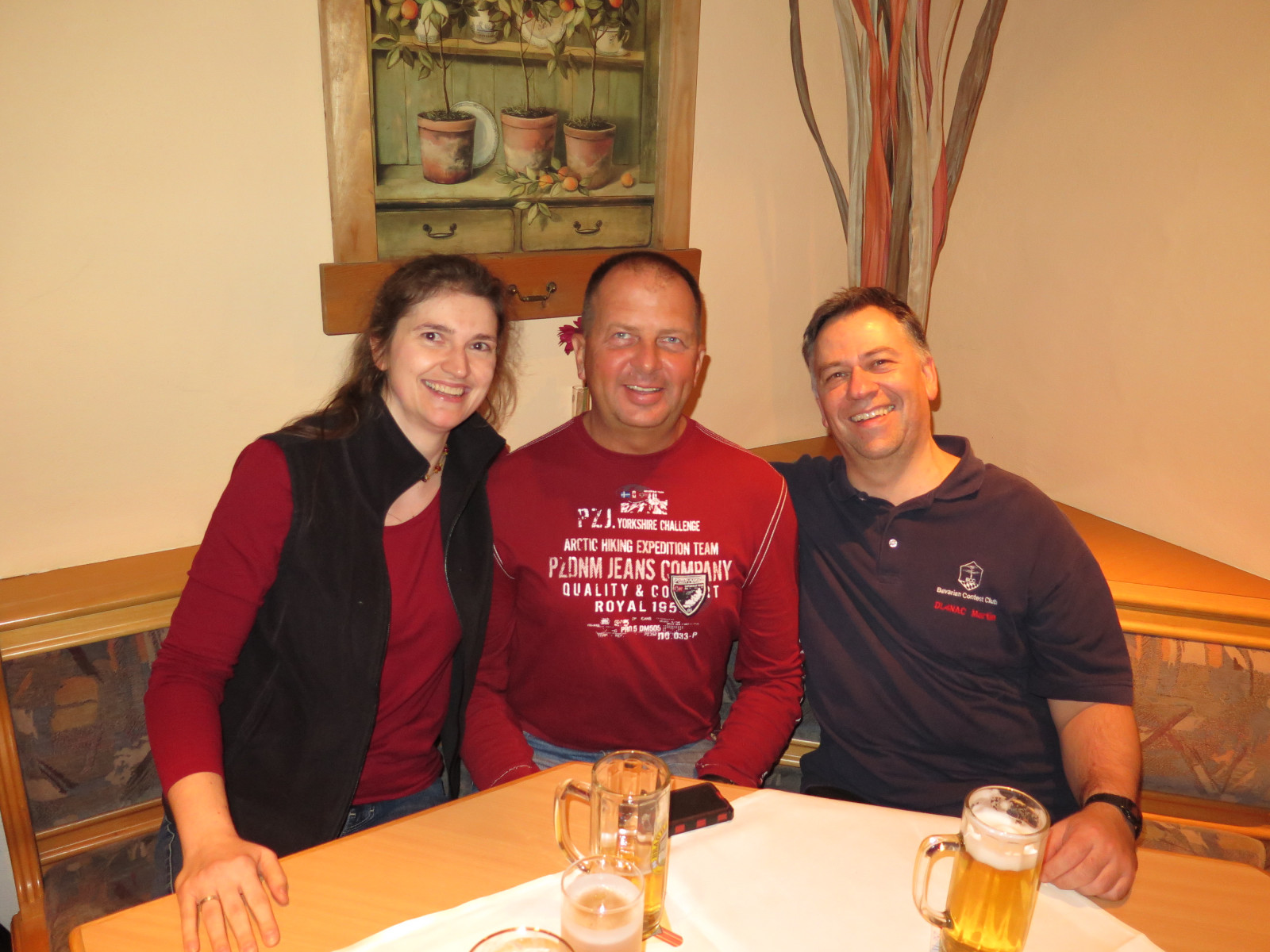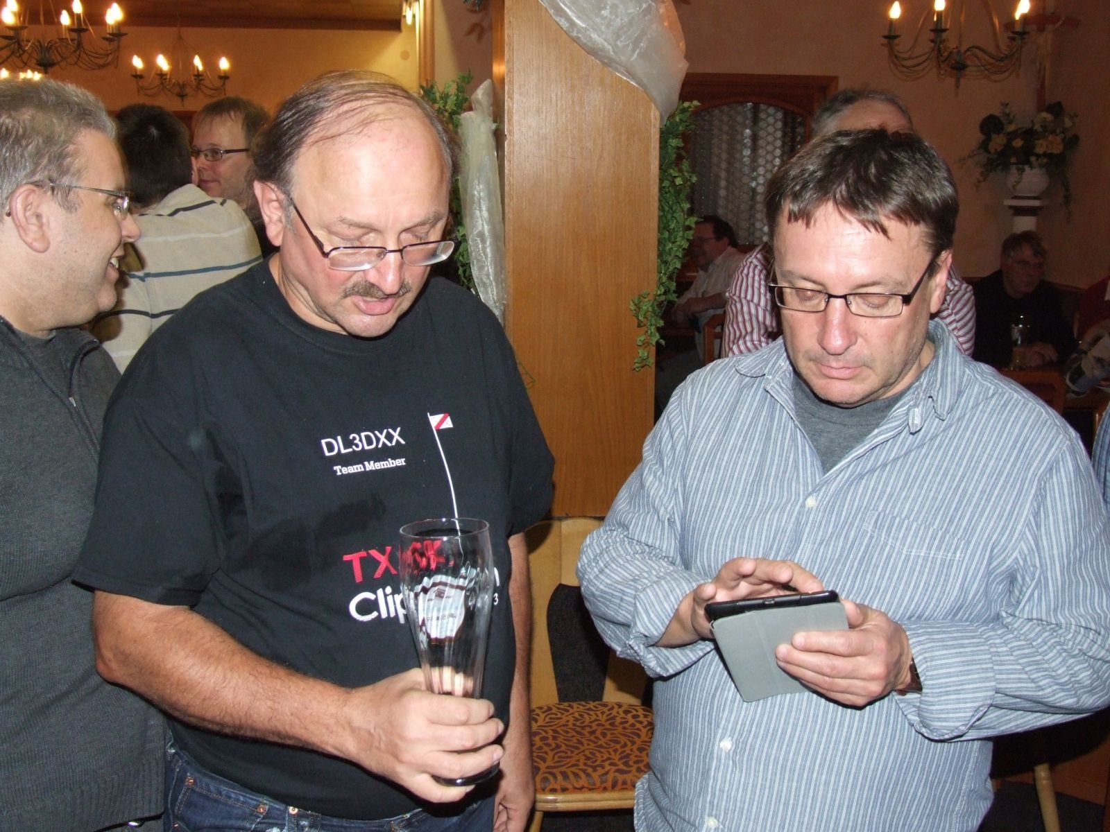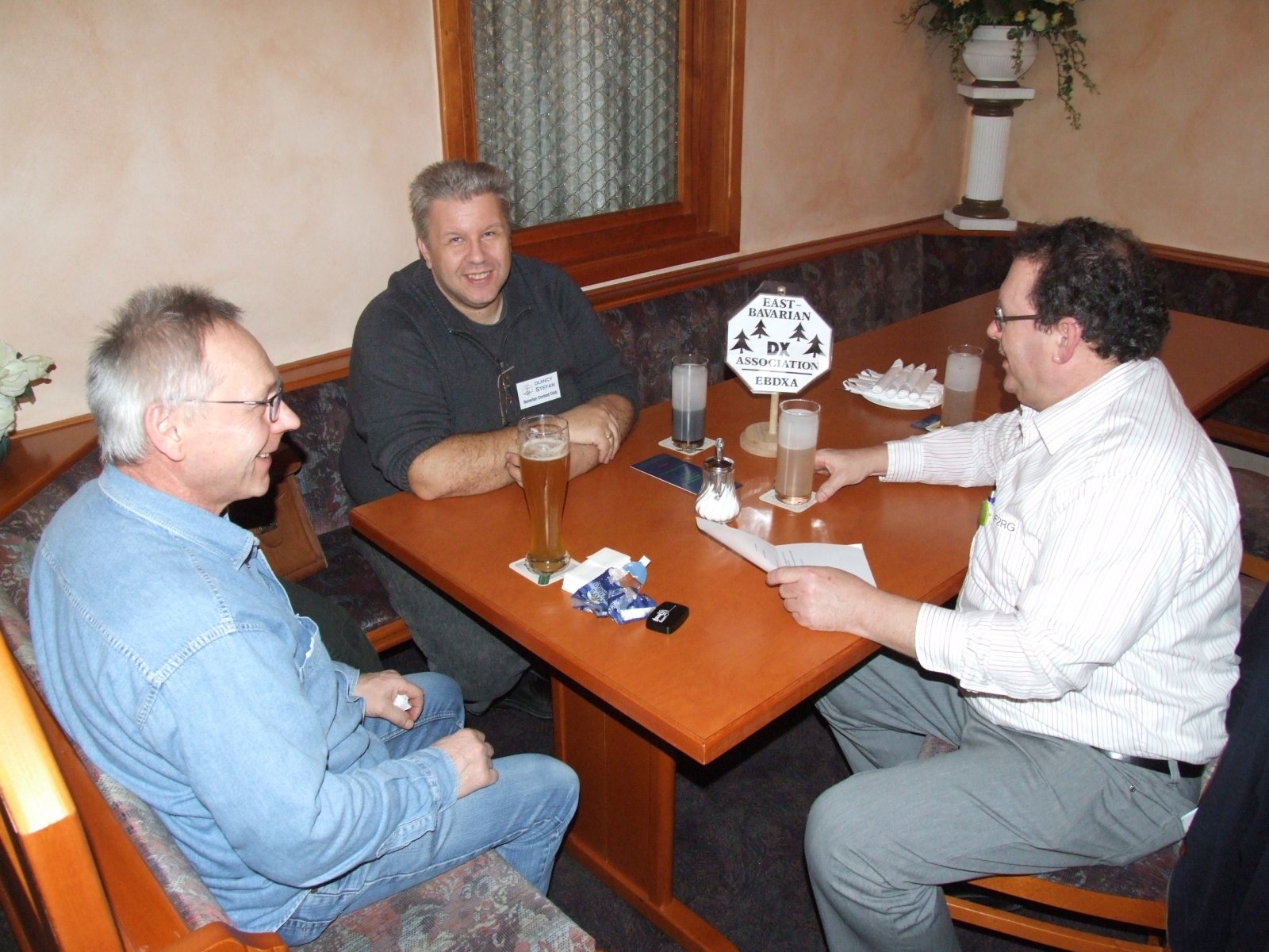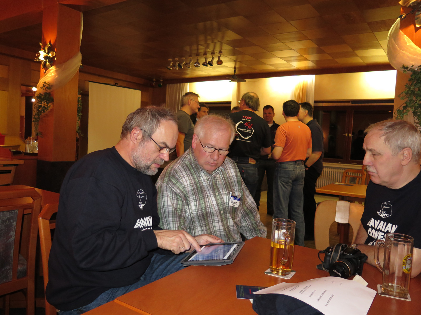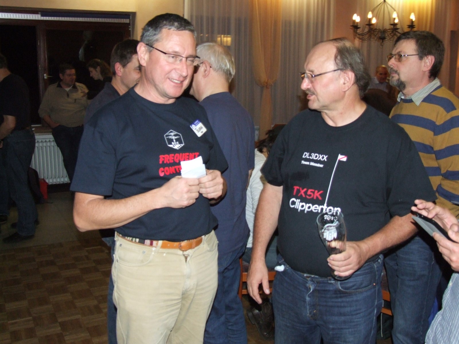 Der Vorabend-Checkin war mit über 20 Gästen sehr gut besucht. Auch unser Gast mit der weitesten Anreise Matt, KC1XX war bereits da. Es wurde über alte Zeiten diskutiert, Fotos betrachtet (jaja, wir werden alle nicht jünger) und schon fleißig bis spät in den Abend geschwatzt.