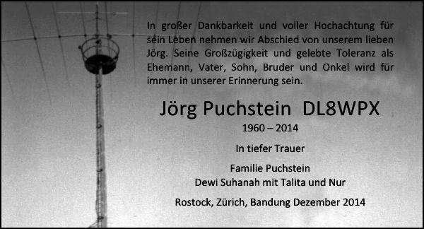 Unser langjähriges BCC-Mitglied Jörg Puchstein, DL8WPX, ist gestern (15.12.2014) überraschend an seinem Wohnort Zürich verstorben. Unsere Gedanken sind bei seiner Familie und bei seinem großen Freundeskreis, den er sich über die Jahre aufgebaut hat.