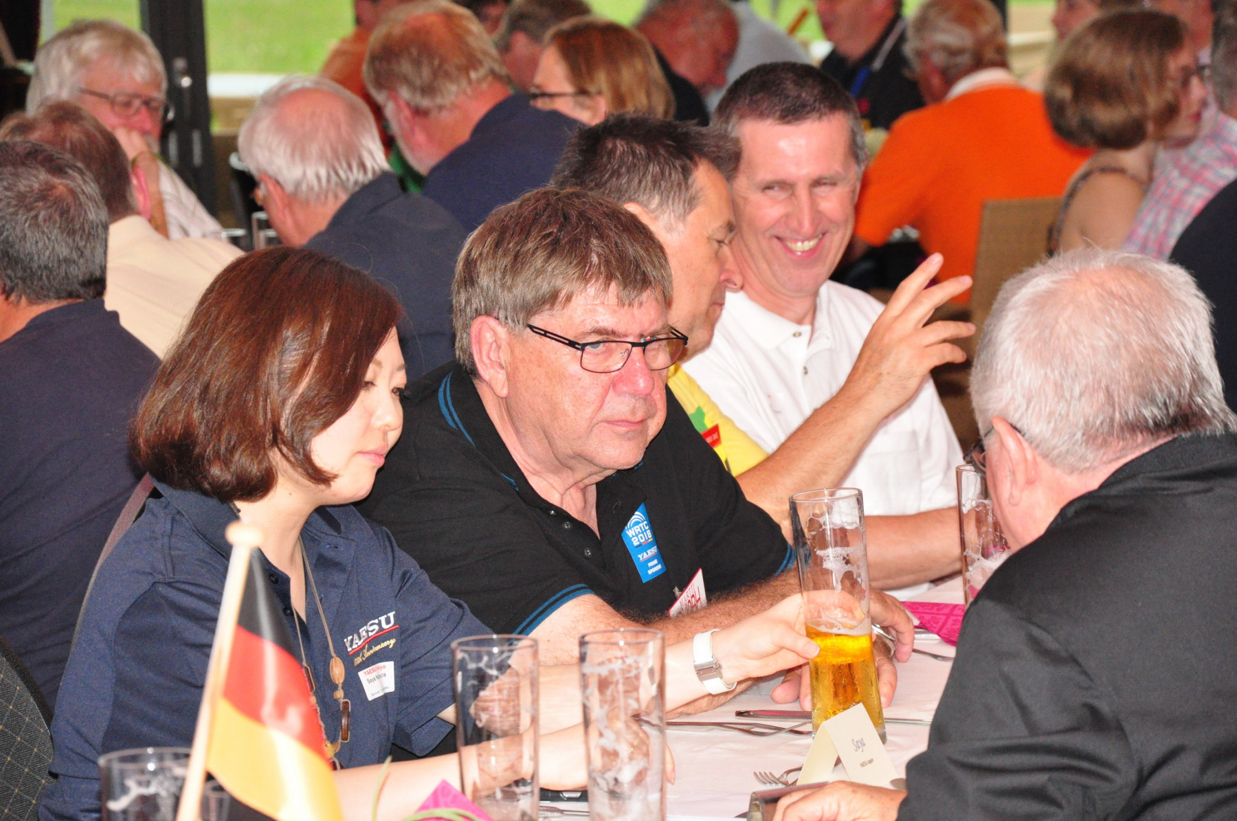 Am Sonnabend haben fand unser BCC-Buffet statt – erstmalig im Zeppelin-Hangar gleich neben dem Messegelände. Damit war die Wegbeschreibung für unsere Gäste sehr einfach. Viele wechselten direkt von der Messe hinüber, so u.U. für den ein oder anderen der Beginn lange auf sich warten ließen. Wir freuen uns, mit knapp 300 Gästen erneut so viele Gäste zu begrüßen. Es war uns eine besondere Ehre, Vertreter von YAESU Musen Inc begrüßen zu dürfen, die tagsüber den Sponsorvertrag als Hauptsponsor der WRTC2018 unterschrieben hatten.