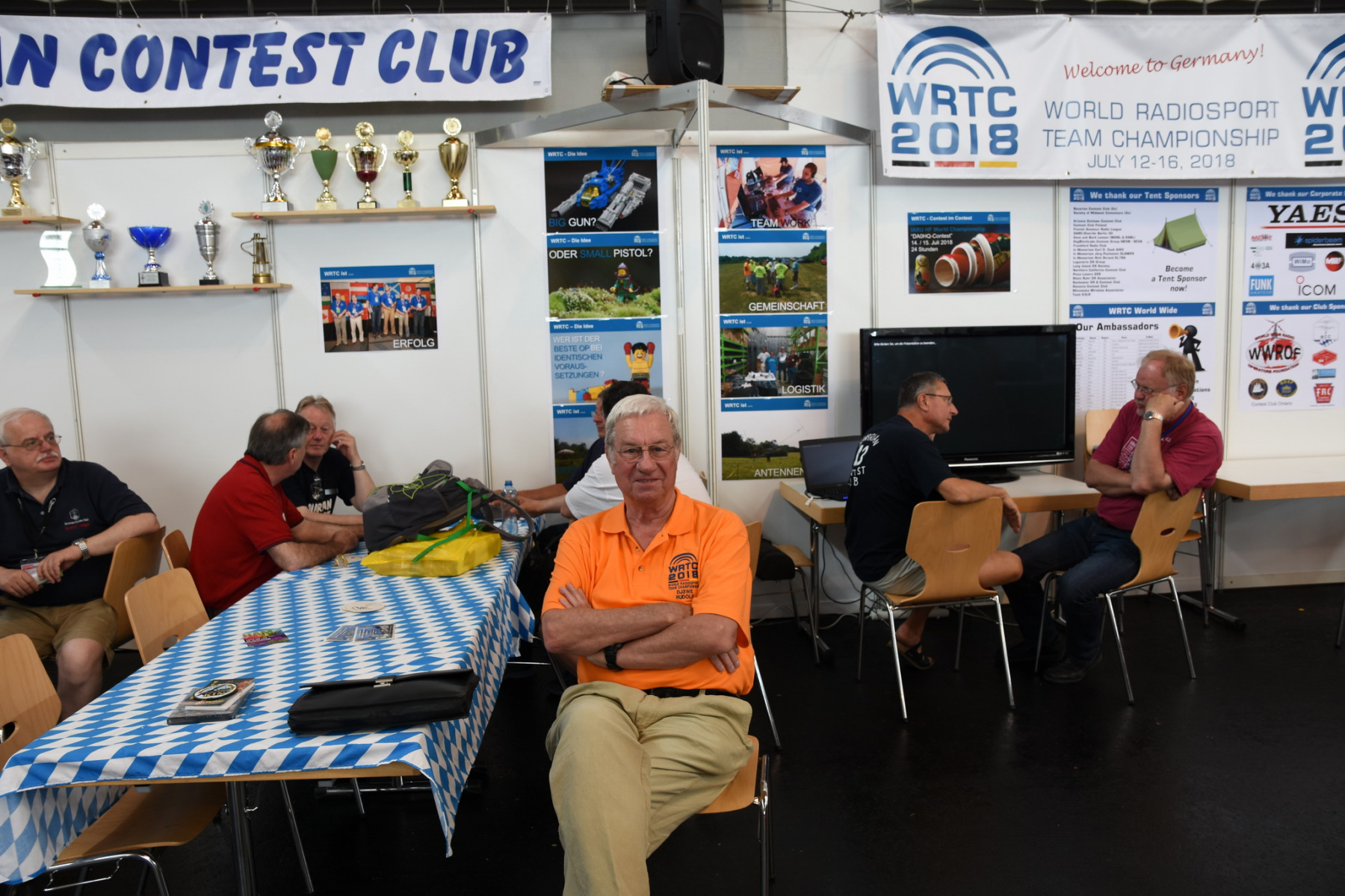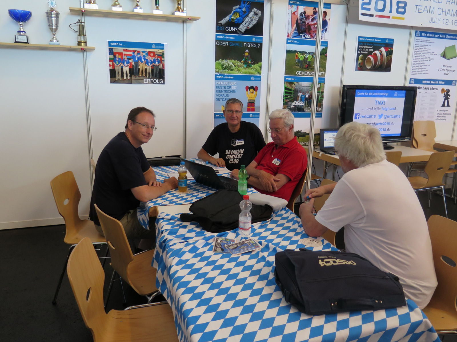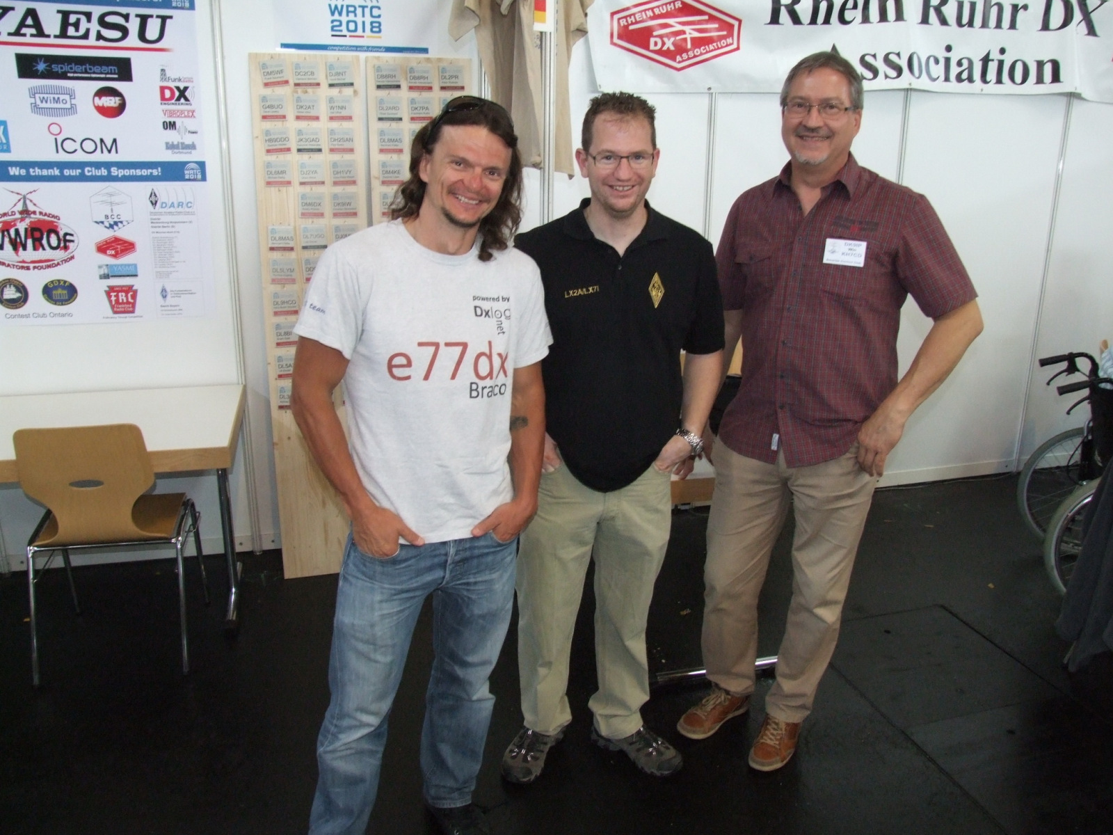 Das letzte Juniwochenende stand wieder ganz im Zeichen des Wiedersehens und dem Austausch. Wir waren wieder an der Stirnseite der Halle A1 zu finden – am Gemeinschaftsstand von BCC, WRTC2018 und RRDXA. Die Gobo-Logos an der Hallenwand zeigten unseren Besuchern den Weg. So fand eigentlich jeder sofort den gewünschten Gesprächspartner….