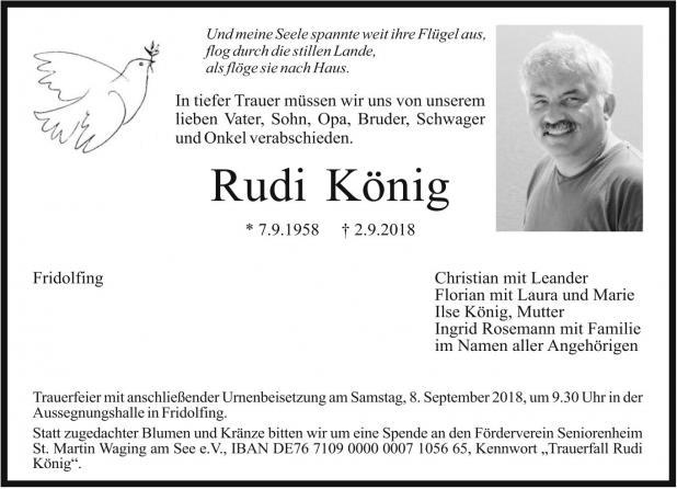 Rudis Frau Bärbel verstarb im Mai 2018 nach schwerer Krankheit. Trotz Kindern und Enkelkind und vielen Freunden im und außerhalb des Amateurfunks erschien ihm ein weiteres Leben sinnlos und er folgte ihr wenige Monate später am 2. September 2018 nach – wenige Tage vor seinem 60. Geburtstag.