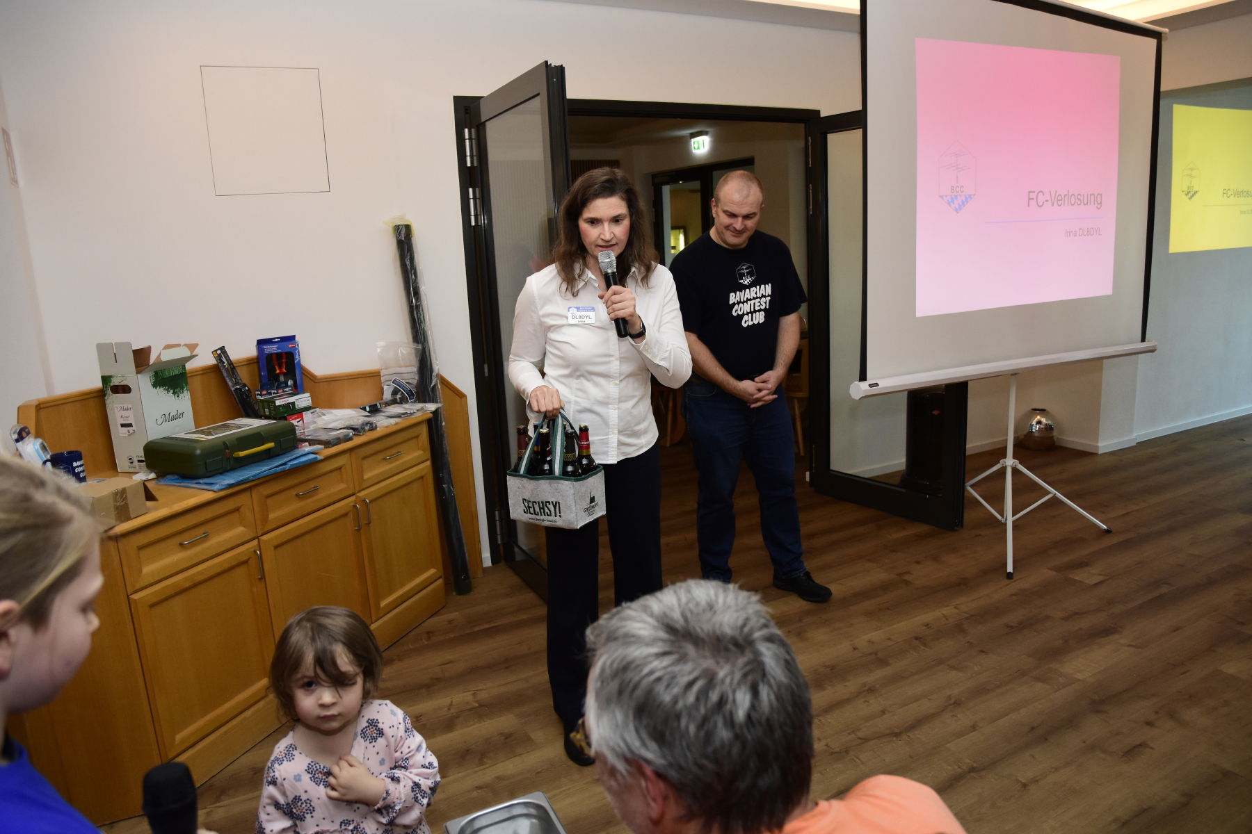 Seit einer Reihe von Jahren werden die Frequent Contester durch den Bavarian Contest Club für ihr Engagement damit belohnt, dass die beim HL3K anwesenden FC‘s an einer Verlosung wertvoller Sachpreise teilnehmen. Hauptpreis ist ein 18 m Spiderbeam-Mast. In diesem Jahr gab es einen sehr speziellen Sonderpreis von RF-POWER: Der Gewinner darf für die Dauer von drei Monaten die RF-Power PA behalten und ausgiebig testen. Des Weiteren wird allen Frequent-Contestern bis Ende März beim Kauf einer PF-POWER PA ein Rabatt von 10 % eingeräumt. Neben dem Haupt- und Sonderpreis kamen viele weitere wertvolle Sachpreise wie zum Beispiel Werkzeuge, HF-Stecker u. Adapter in die Verlosung. Auch schmackhafte Betriebsstoffe für das „after-contest-happening“ standen auf dem Tisch, um verlost zu werden. Irina, DL8DYL, die wie immer gekonnt diesen Teil des HL3K moderierte, hatte hervorragende Unterstützung durch Lenny, DA6NEN, der mit SWL Sophie Riederer die Bekanntgabe der Gewinner übernommen hatte. Lenny ist mit seinen 10 Jahren schon fast ein alter Hase, denn er hatte diese Aufgabe im letzten Jahr bereits perfekt ausgeführt. Mit Sophie stand ihm eine äußerst geschickte Assistentin zur Seite, die mit ihrem „Präzisionsfeingriff“ die einzelnen Gewinner aus dem Lostopf zog, um die kleinen Loszettelchen dann an Lenny weiter zu reichen, der in gekonnter Manier die Rufzeichen ins Mikrofon sprach und für Freude nicht nur bei den Gewinnern sorgte. Vielen Anwesenden wurde beim Beobachten der sehr jungen „Youngsterin“ Sophie klar, wer an der Station von Maddin, DL4NAC wohl künftig mehr und mehr die Geräte bedient. Es ist wohl nur eine Frage der Zeit, wann Sophie (3!) nicht nur Lenny (10), sondern auch dem Papa „4NAC“ nacheifert…